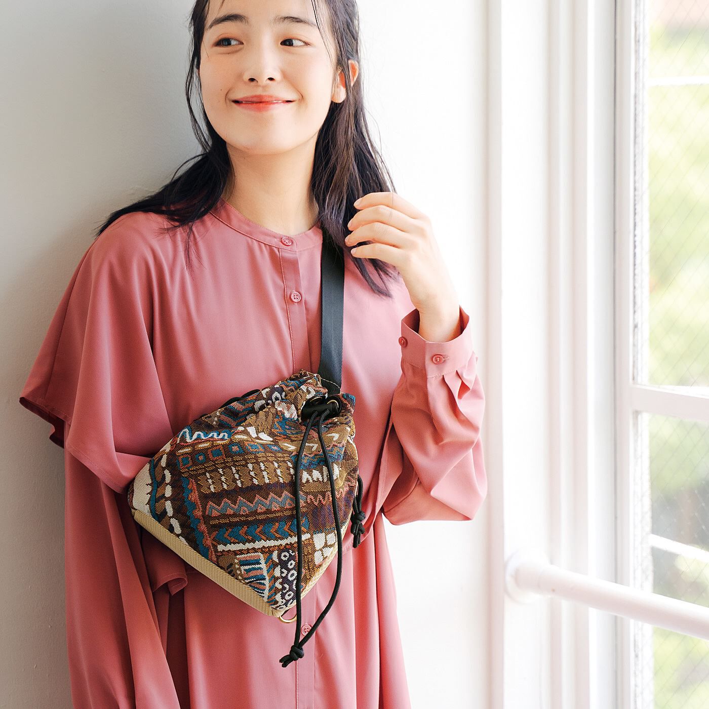 カジュアルなボディーバッグはゴブラン柄で大人っぽく!【3つで\6,666】キャンペーン対象商品3点以上で特別価格\2,222両手が自由に使えて、からだに寄り添うらくちんさが人気のボディーバッグ。今シーズンは、華やかなゴブラン柄を合わせました。スポーティーだけど大人っぽくて、地味になりがちなコーデに映えるのがポイント。存在感のある柄が着こなしのアクセントになってくれます。
