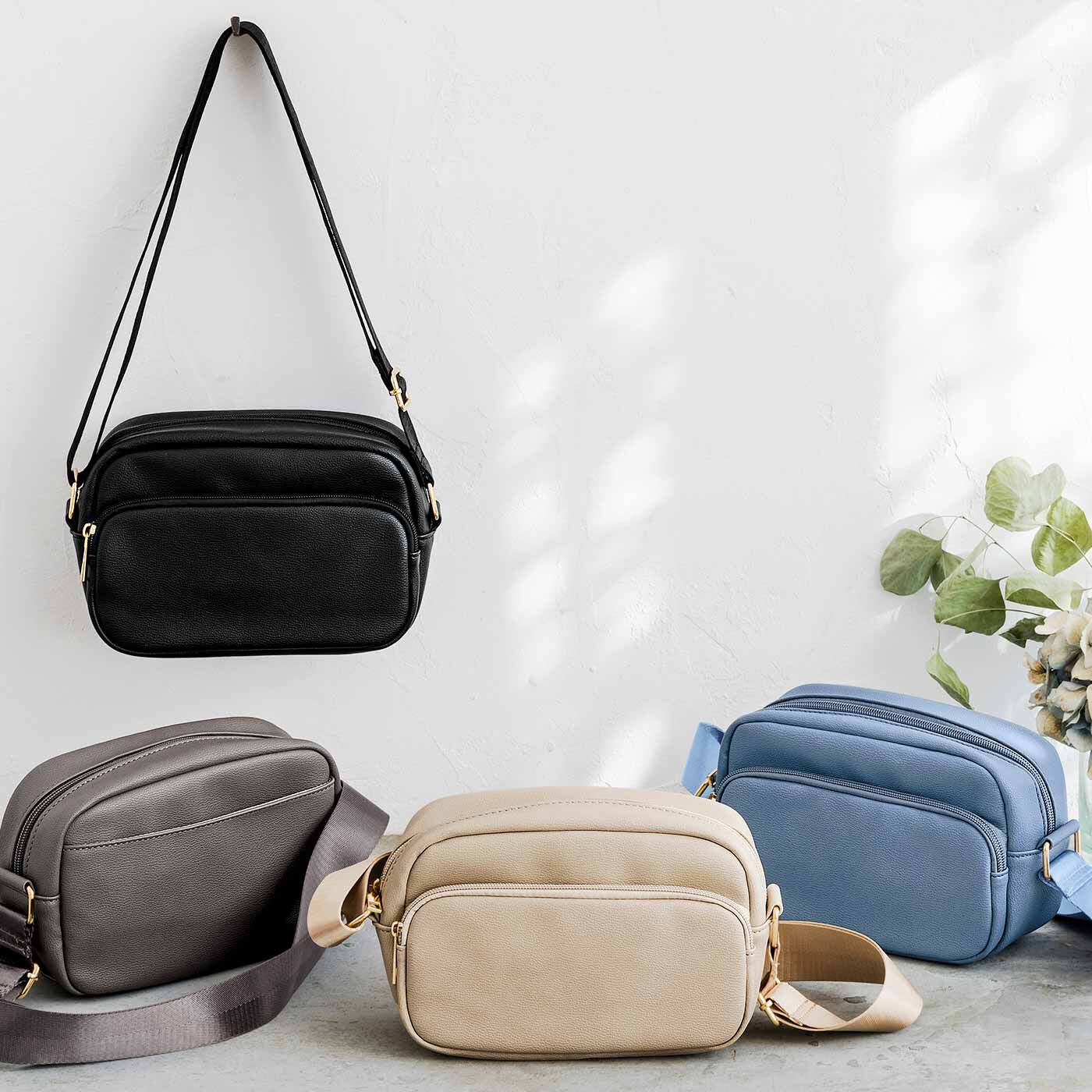 コンパクトに見えて、自慢の収納力! 街歩きが楽しくなるシンプルバッグ!カジュアルにもきれいめコーデにも合わせやすいショルダーバッグは、コンパクトなのに収納力あり! 小さいバッグを持ちたいけれど、荷物が増えてしまう方におすすめです。見た目以上に入る秘密は、スクエア型でまちが広いこと。前面と内側ポケット付きで、仕分け力も◎。