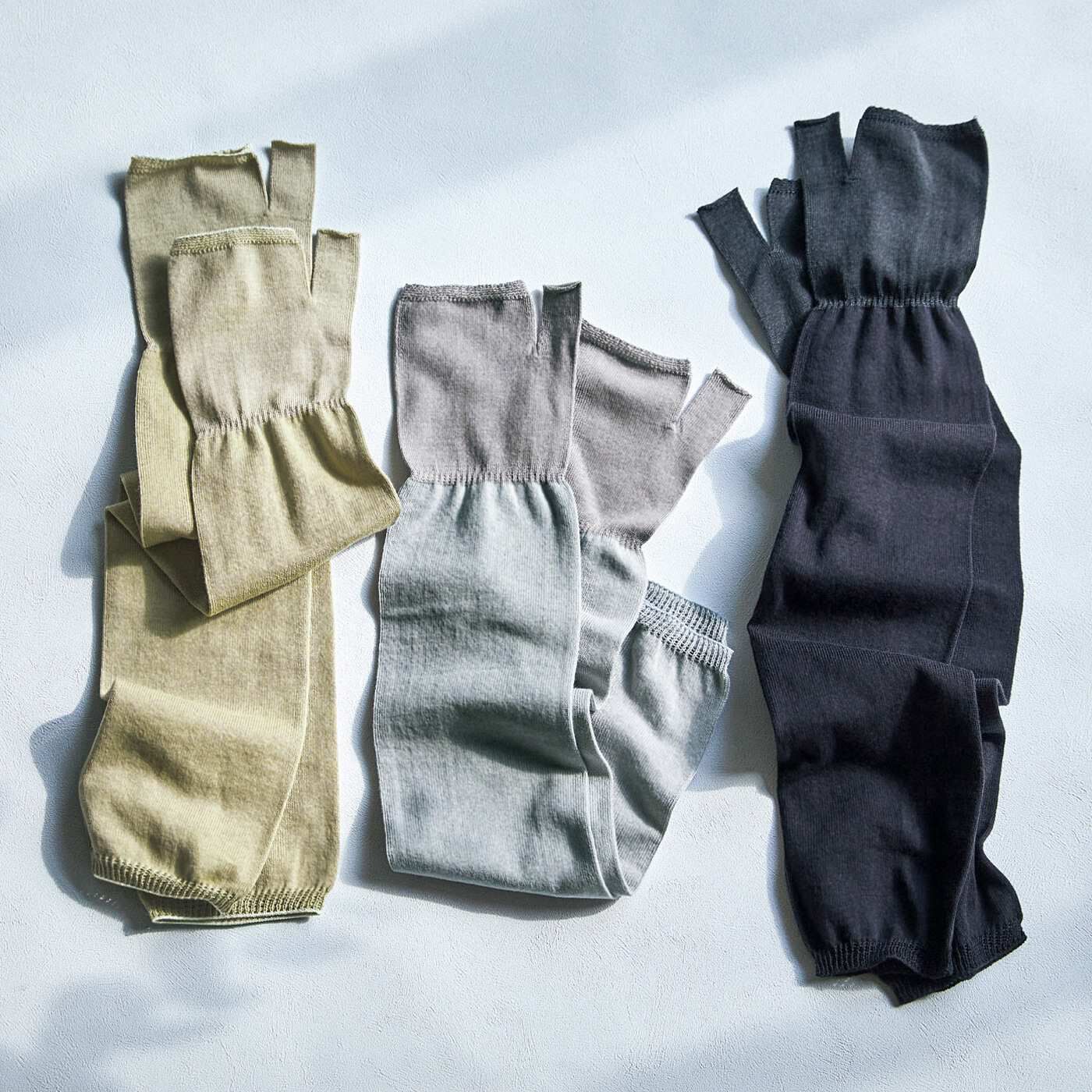 UV対策は、素肌にうっとり心地よく【3つで\6,666】キャンペーン対象商品3点以上で特別価格\2,222縫い目のないホールガーメント(R)で編み立てたアームカバー。腕部分はコットン100%で編み立てて、汗でむれやすい手と指部分はシルク混で滑らかな肌当たりに。二の腕から手の甲、親指までカバーしつつも、指先は使えるのでスマホ操作やかぎの開け閉めもスムーズ。薄手なので軽やかな着け心地です。おやすみ中にもおすすめです。