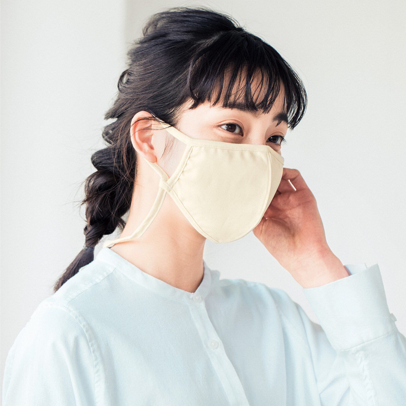 ストラップ調節で息がしやすい快適空間に【3つで\2,550】キャンペーン対象商品3点以上で特別価格\850内側に空間ができやすい立体設計で息がしやすく、ストラップで着け心地を調整できるマスク。垂れたリボン結びの後ろ姿もかわいく、アクセサリー感覚で楽しめます。