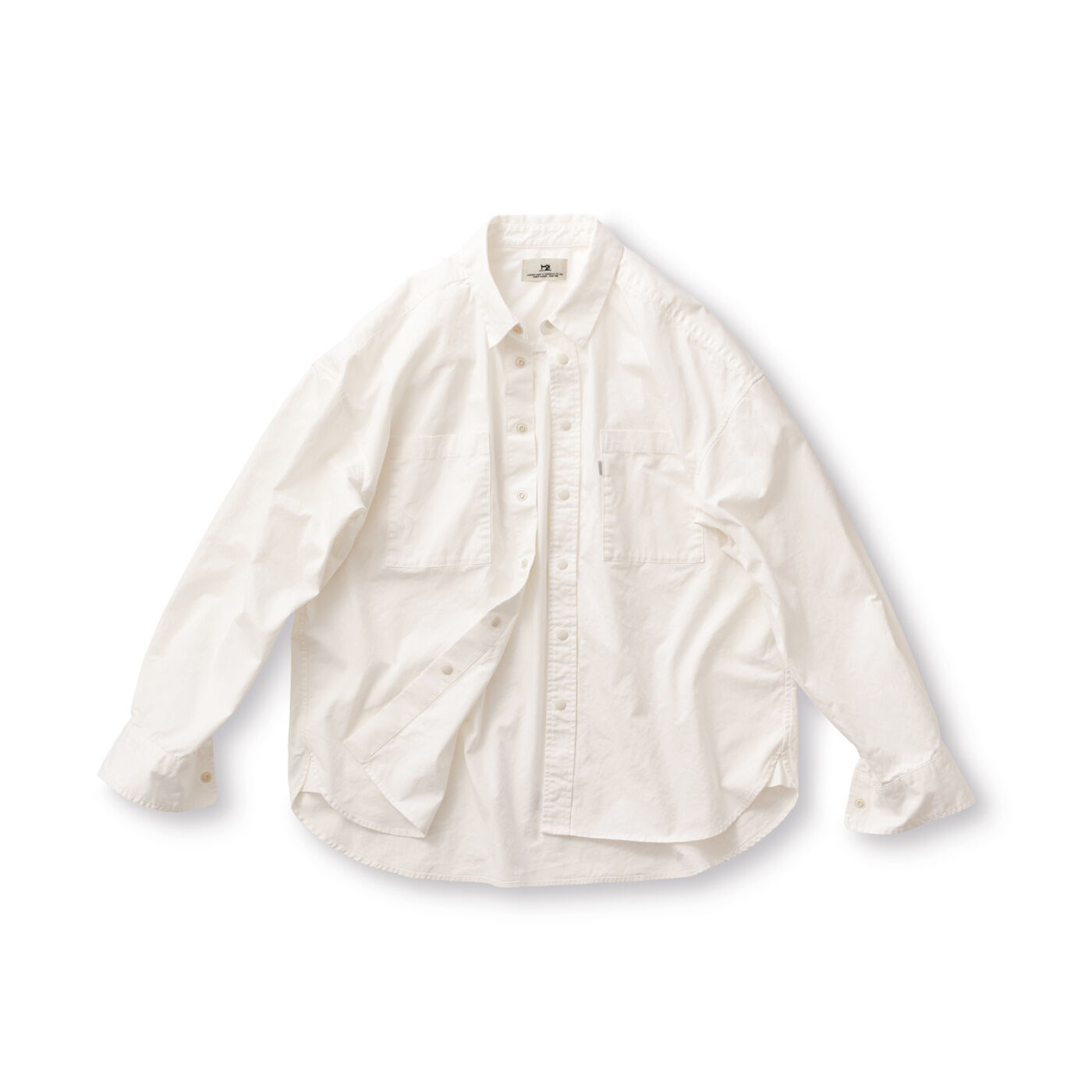 花言葉は「高潔な心」、そして「自然への愛」。ハクモクレンの花びらのような白くてきめ細かい風合いの生地で仕立てた「ハクモクレンシャツ」。しっかりと打ち込んで張り感を出した生地で、ゆったりとしたオーバーシルエットに作っているので、シャツジャケットのような羽織りとしても重宝します。前立てには穴ボタンではなく白いスナップボタンを採用して、少しスポーティーな雰囲気を出しました。