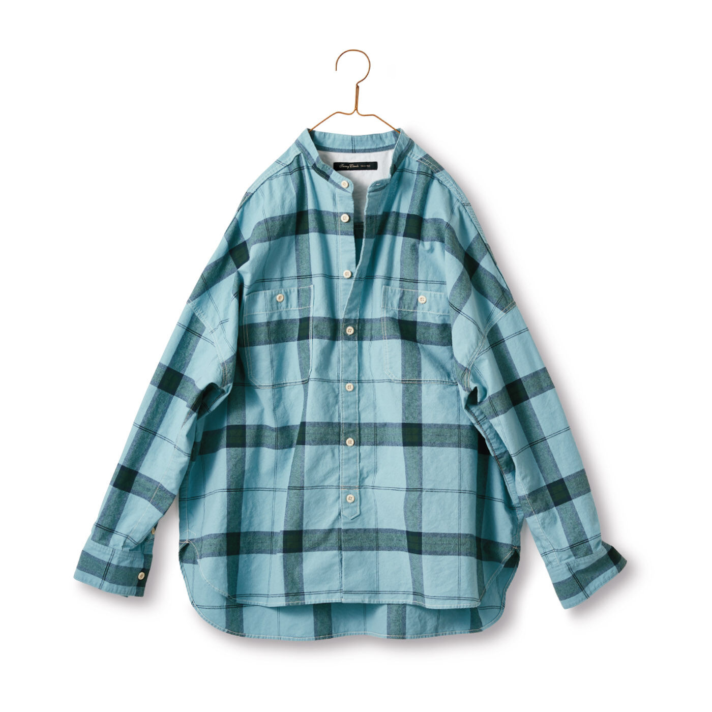 空色のシャツを着て。春らしい少し淡いブルーの空をイメージして色組みした「空色のチェックシャツ」は、ドロップショルダーのゆったりとしたシルエットで作りました。ステッチやボタンを配色にしてワークな雰囲気を出しています。これからの季節にぴったりのさわやかなシャツです。