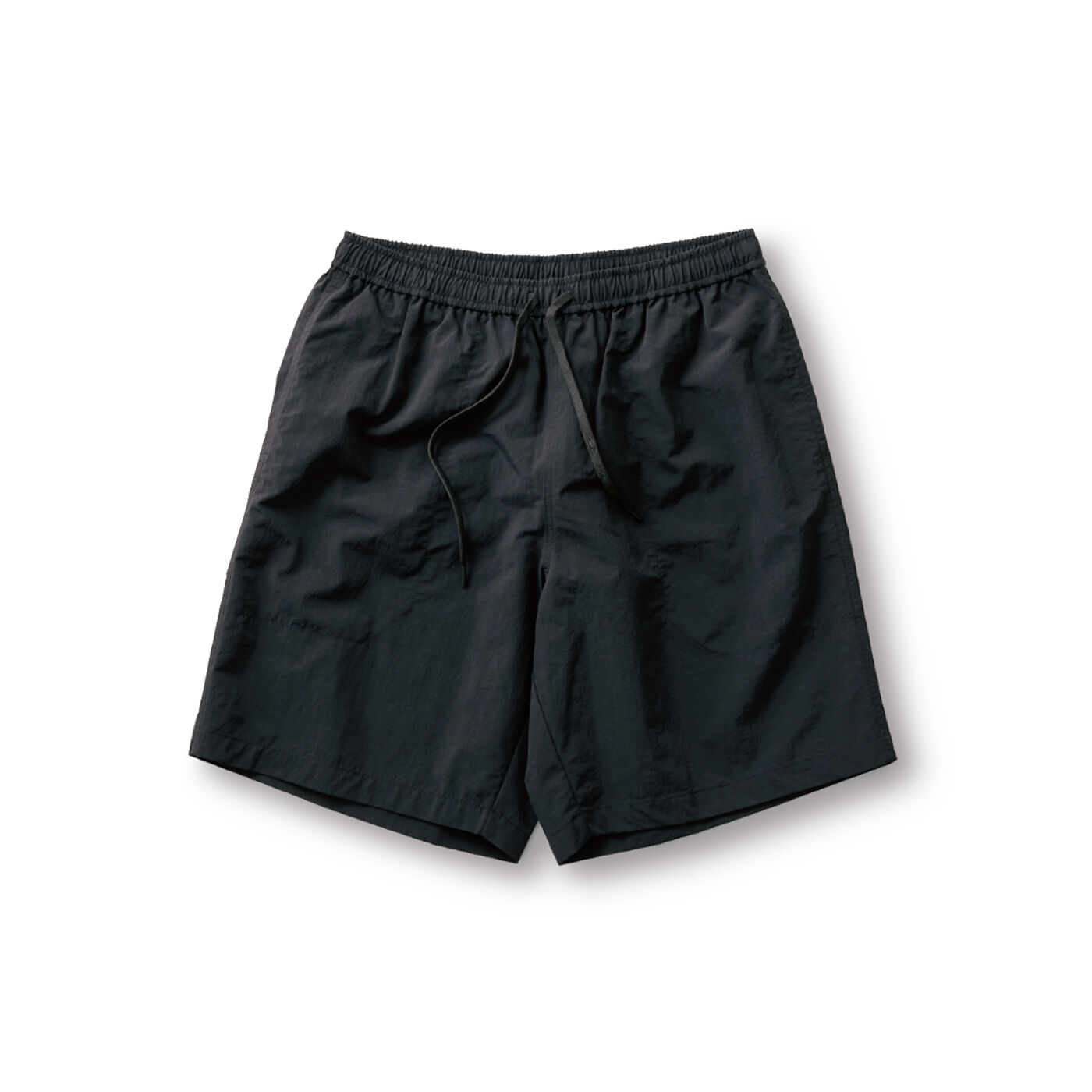 水も滴るいいパンツ。暑い夏は短パンが最高! ということで、大人でもはきやすい「水辺のナイロン短パン」を作りました。あえて光沢を抑え、ワッシャー加工で表面にシボ感を出して天然繊維風の風合いに仕上げたナイロン生地は、水着の生地としても使われている生地です。ポケットはハトメやメッシュスレキで水がたまらないように海パン仕様で仕上げています。サポーターと合わせたら水着としても使える水陸両用のパンツは、シャツと合わせてセットアップで活躍させてください。