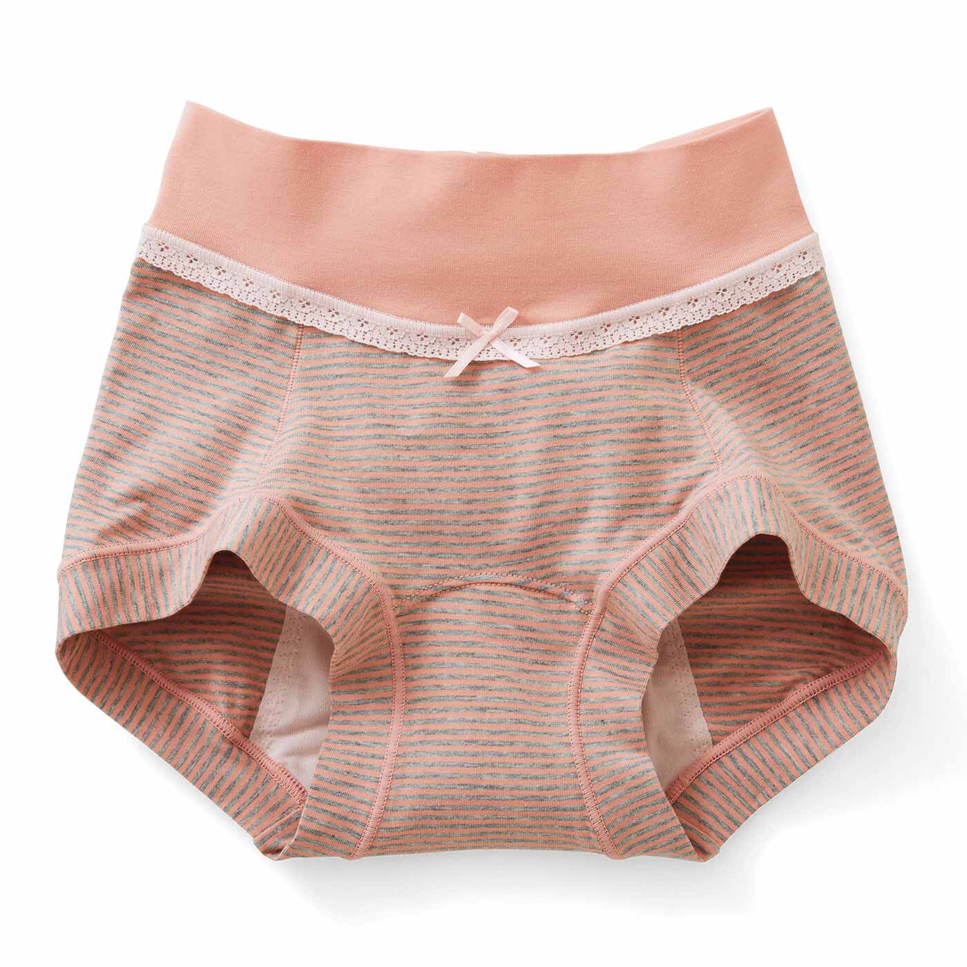 立体設計だからズレにくく アクティブ!おしり部分がずり上がらない立体設計で、脚口にピタッとフィット。ナプキンのフィット感もいいから、アクティブな動きも安心です。高級綿糸、スーピマコットンのベア天じくで肌ざわりもグー!