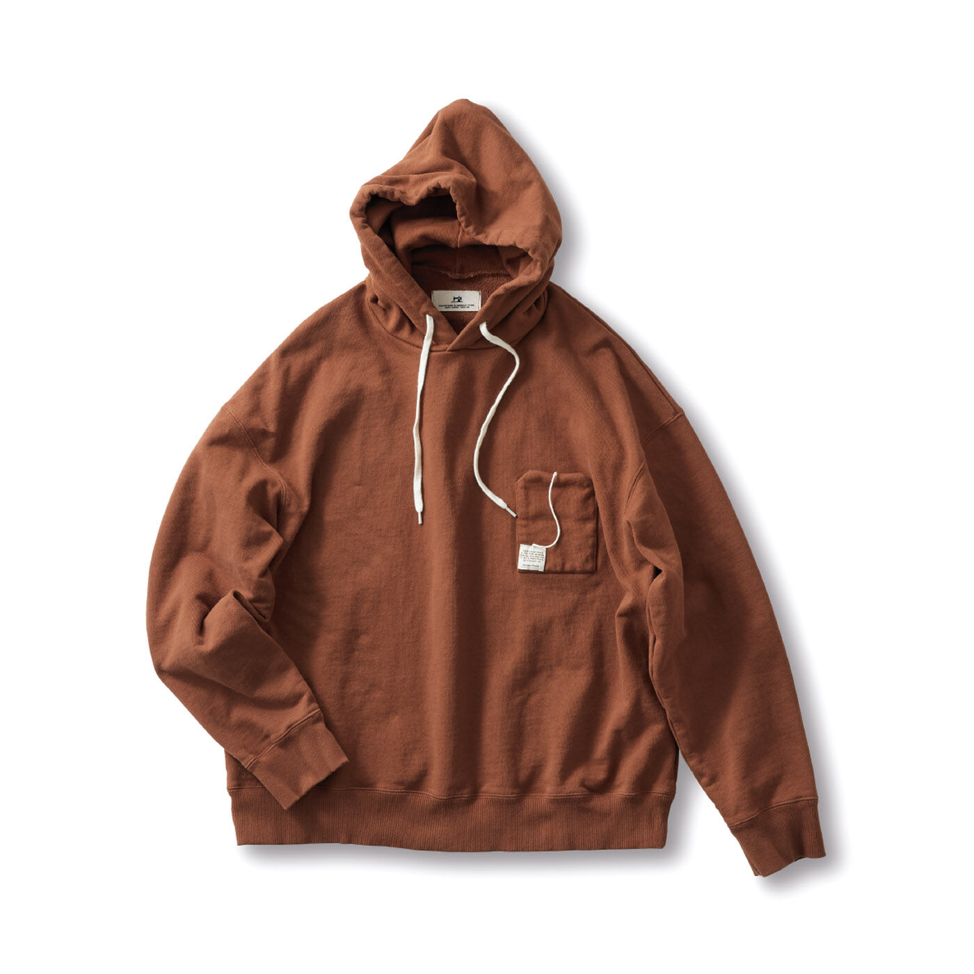 午後も紅茶で。手軽に紅茶を飲むなら、やっぱりティーバッグは欠かせません。そんなティーバッグをどこかにモチーフとして入れたいと考えて作ったのが「ティーバッグパーカー」。太番手空紡糸で編み立てた裏毛生地で作ったパーカーですが、ポケットの形をティーバッグにするだけでは味気ないので、ひもとネームでよりティーバッグっぽさを演出しています。持ち手を意識した四角いネームの位置に悩みましたが、最後はイメージしてた感じに仕上がりました。ドロップショルダーのゆったりとしたシルエットのカジュアルスタイルにぴったりなパーカーです。