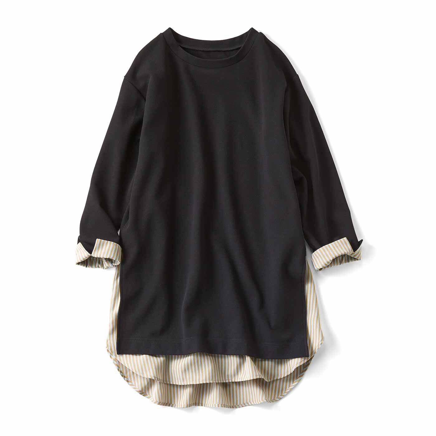 トップ >フェリシモ「コレクション」の紹介 >ファッション >リブ イン コンフォート すそからのぞくストライプを楽しむ チュニック&タンクトップセット〈ブラック〉【送料無料】