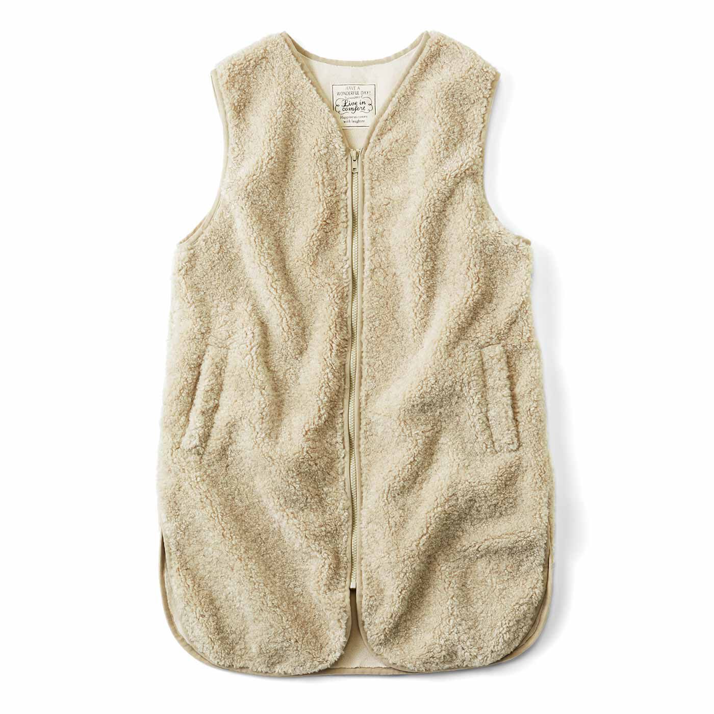 トップ >フェリシモ「コレクション」の紹介 >ファッション >リブ イン コンフォート はまじとコラボ はおるだけでオシャレ見えする 軽くて暖かなボアロングベスト〈ベージュ〉【送料無料】