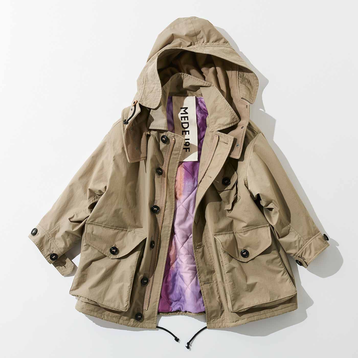 トップ >フェリシモ「コレクション」の紹介 >ファッション >MEDE19F 裏地がオリジナルグラフィックのカナディアンモッズコート〈グレージュ〉【送料無料】