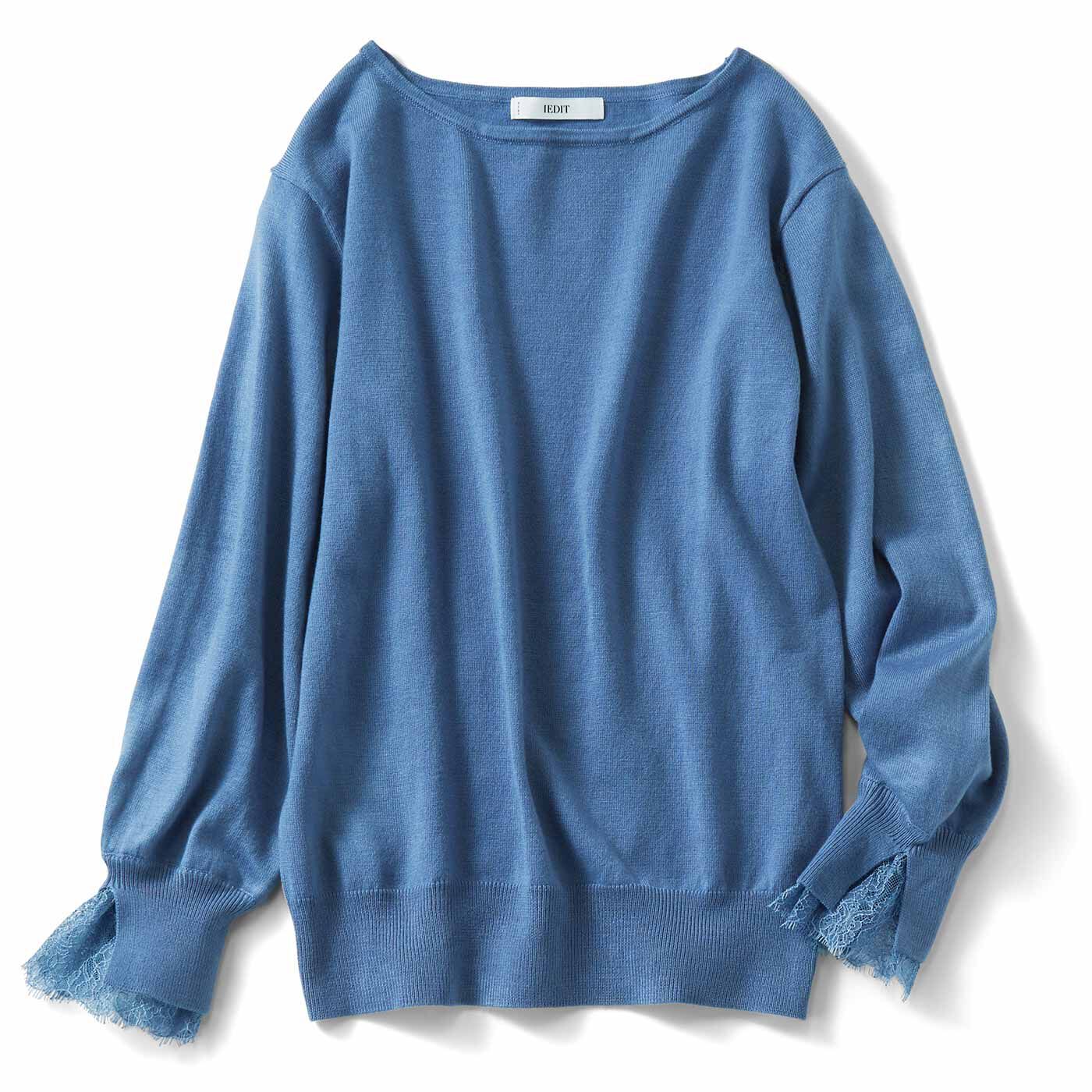 IEDIT[イディット] 袖スリットからのぞく繊細レースが華やかな デザインニットトップス〈ブルー〉【送料無料】