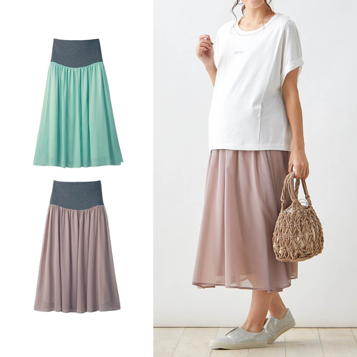 【ベルメゾン】産後まで使える!マタニティサイズシフォンギャザースカート 【産前・産後】