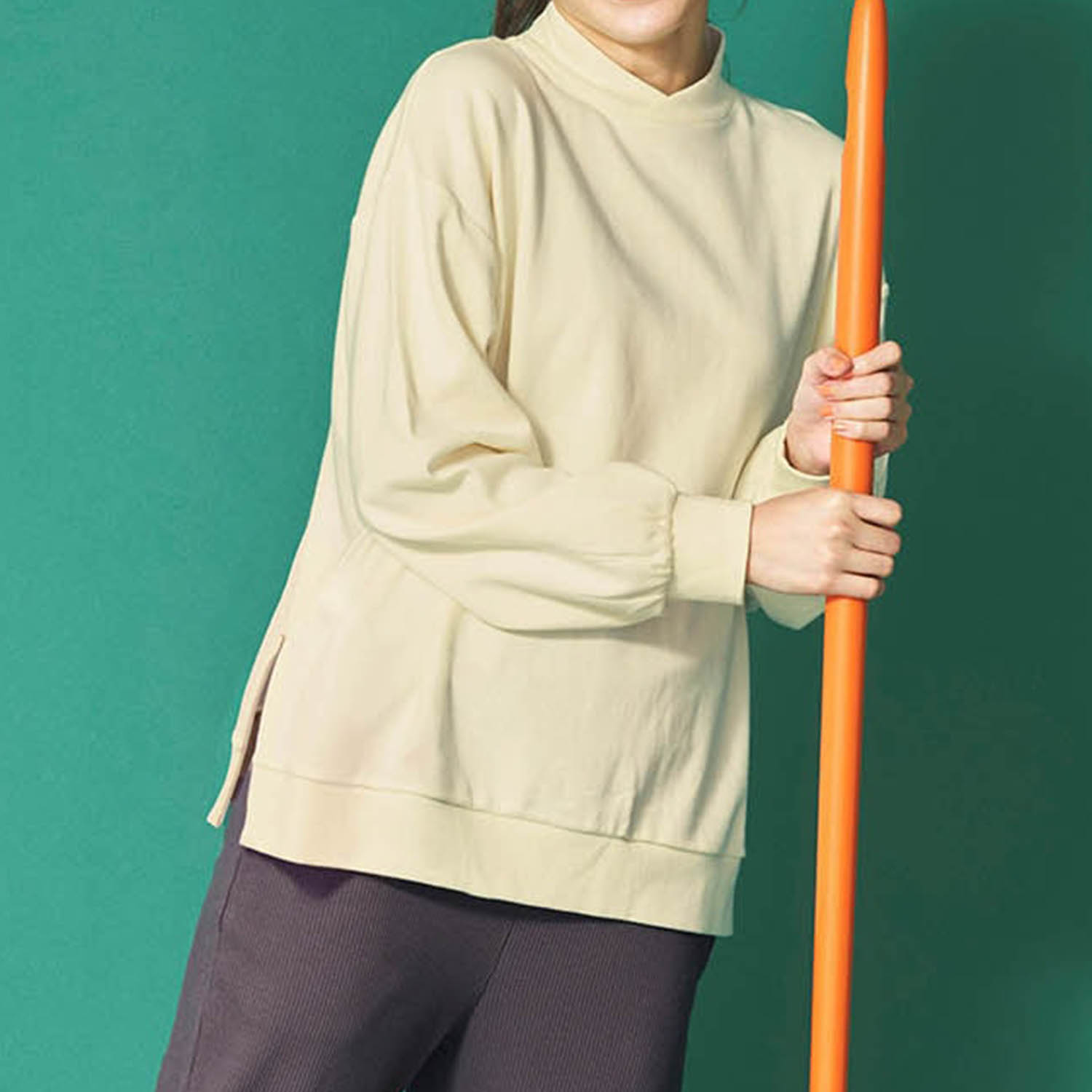 スウェットを着たいけれど、重くて授乳が大変というママの声から生まれた一着。スウェットライクでありながら、カットソー素材で軽くてデイリーに活躍。前から見るとパーカ見えする立ち襟仕様で着こなしに立体感が加わります。両脇ファスナーで授乳も快適ゆとりをもたせたシルエット