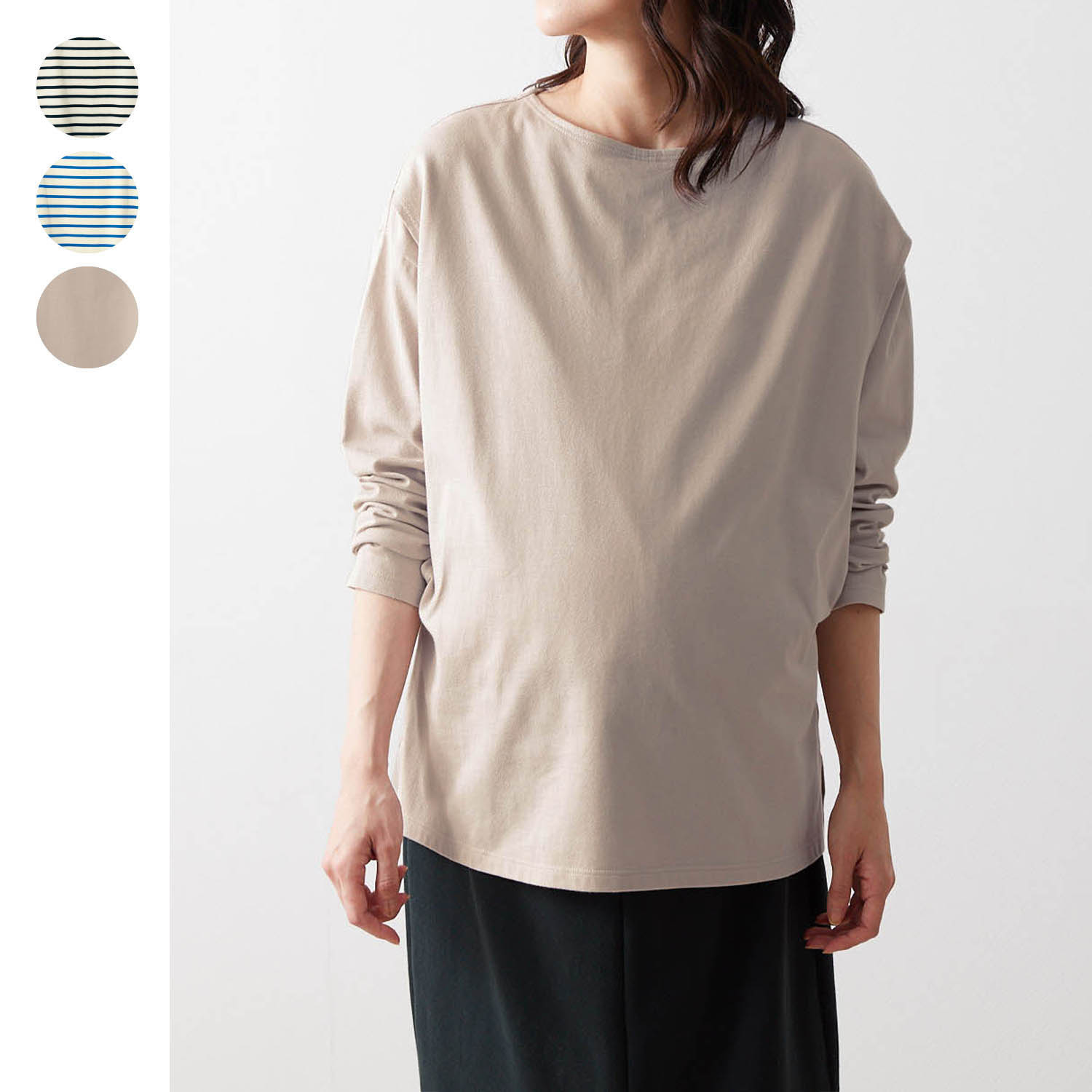 【ベルメゾン】産後授乳にも便利!マタニティサイズボートネック長袖Tシャツ 【産前・産後】