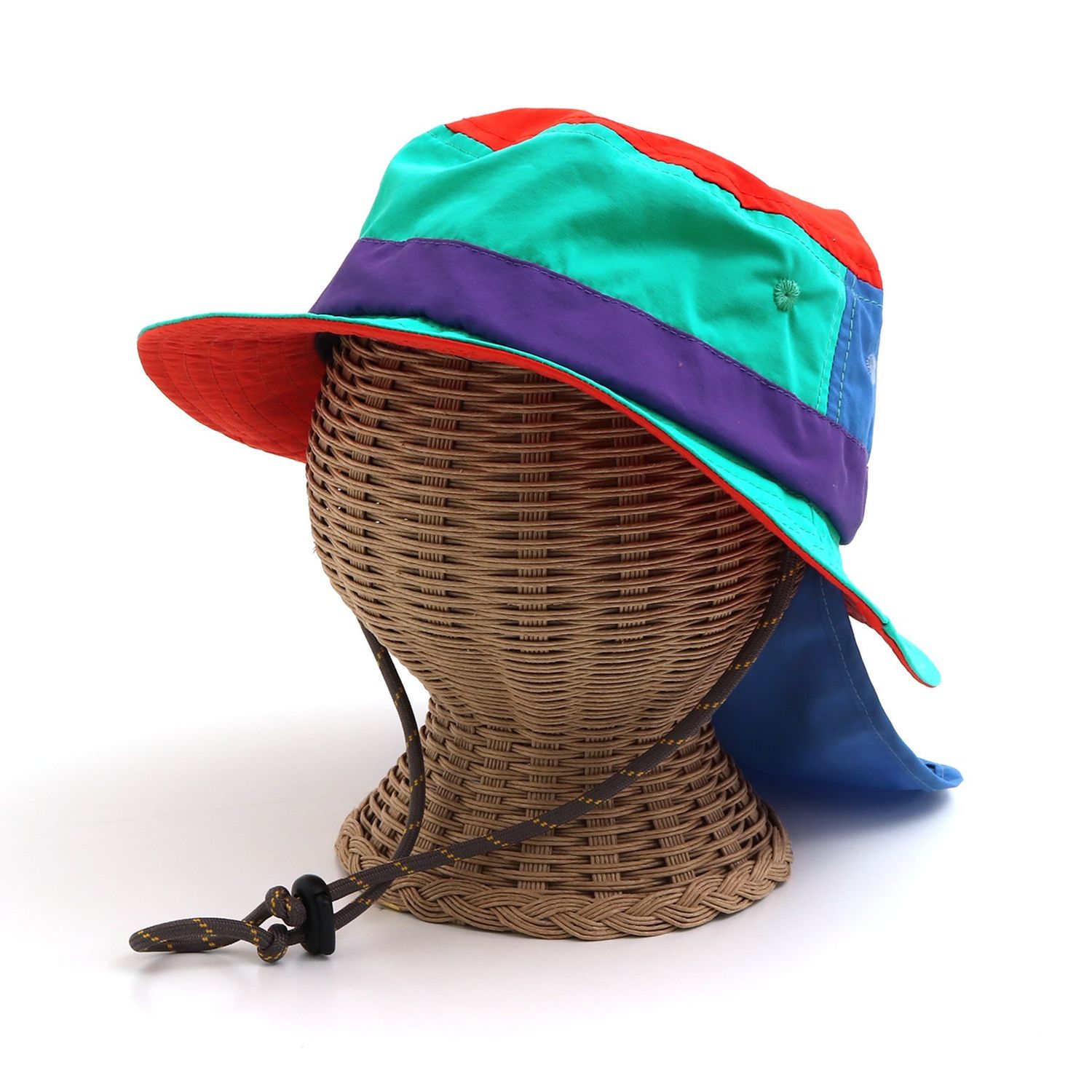 Ampersand人気の定番アウトドアハット。無地はちょっとシックに、クレイジーカラーは元気な配色で展開。日よけ布が収納できる仕様で、気候に合わせてアレンジ可能。