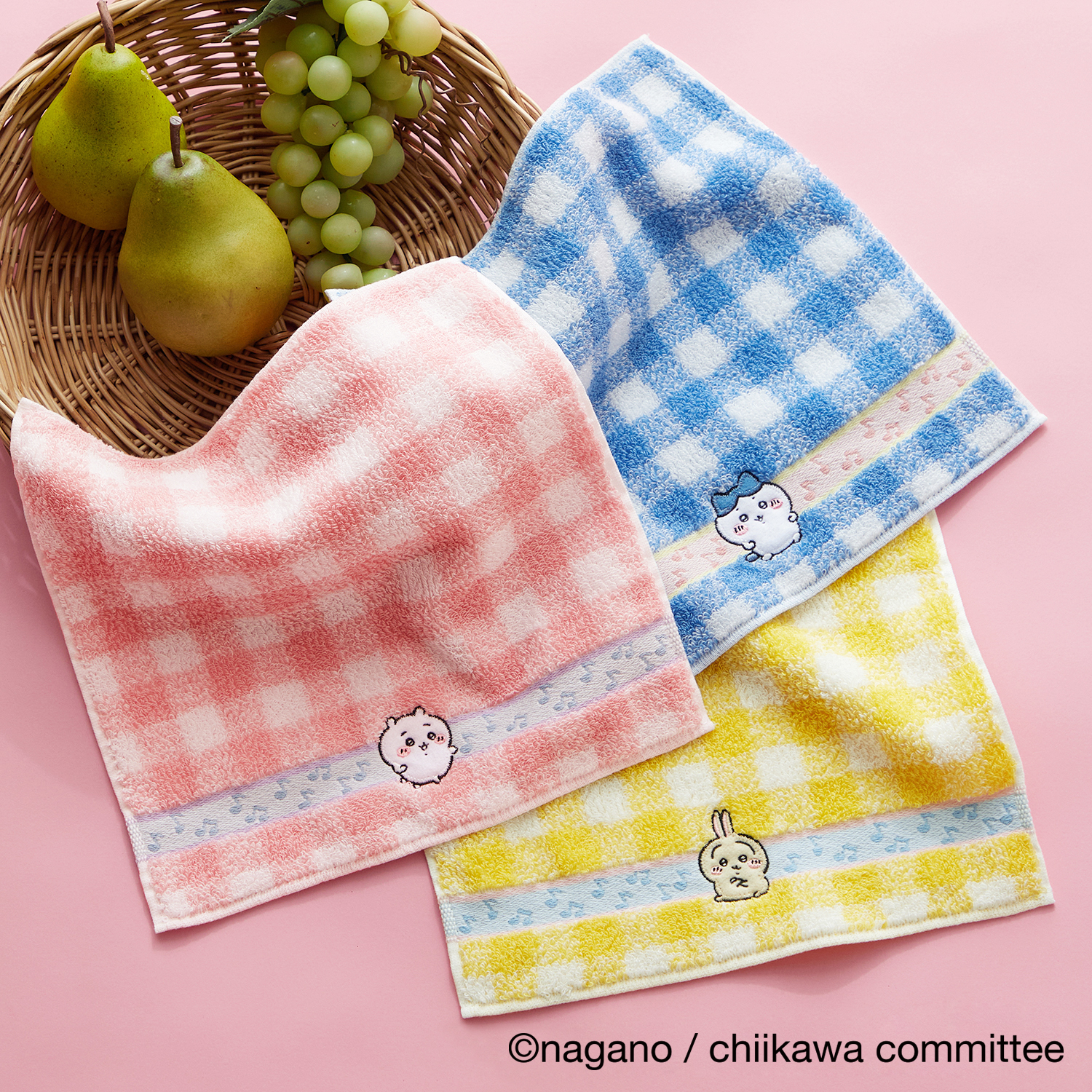 【ちいかわ】「ちいかわ」チェック柄タオルハンカチ/音符(ちいかわ・ハチワレ・うさぎ)