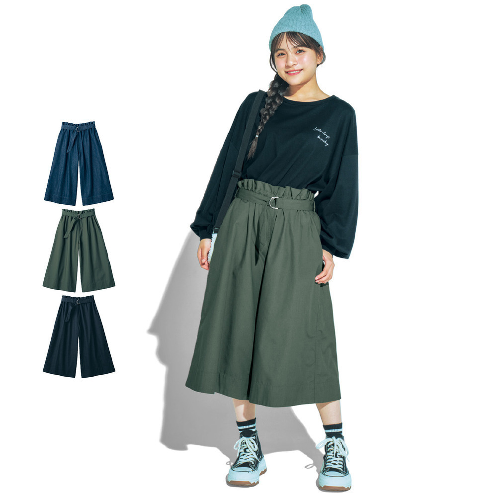 【パペル ラピス/Papel lapiz】ベルト付きクロップドワイドパンツ(ウエスト調節可) 【子供服 子供ズボン】