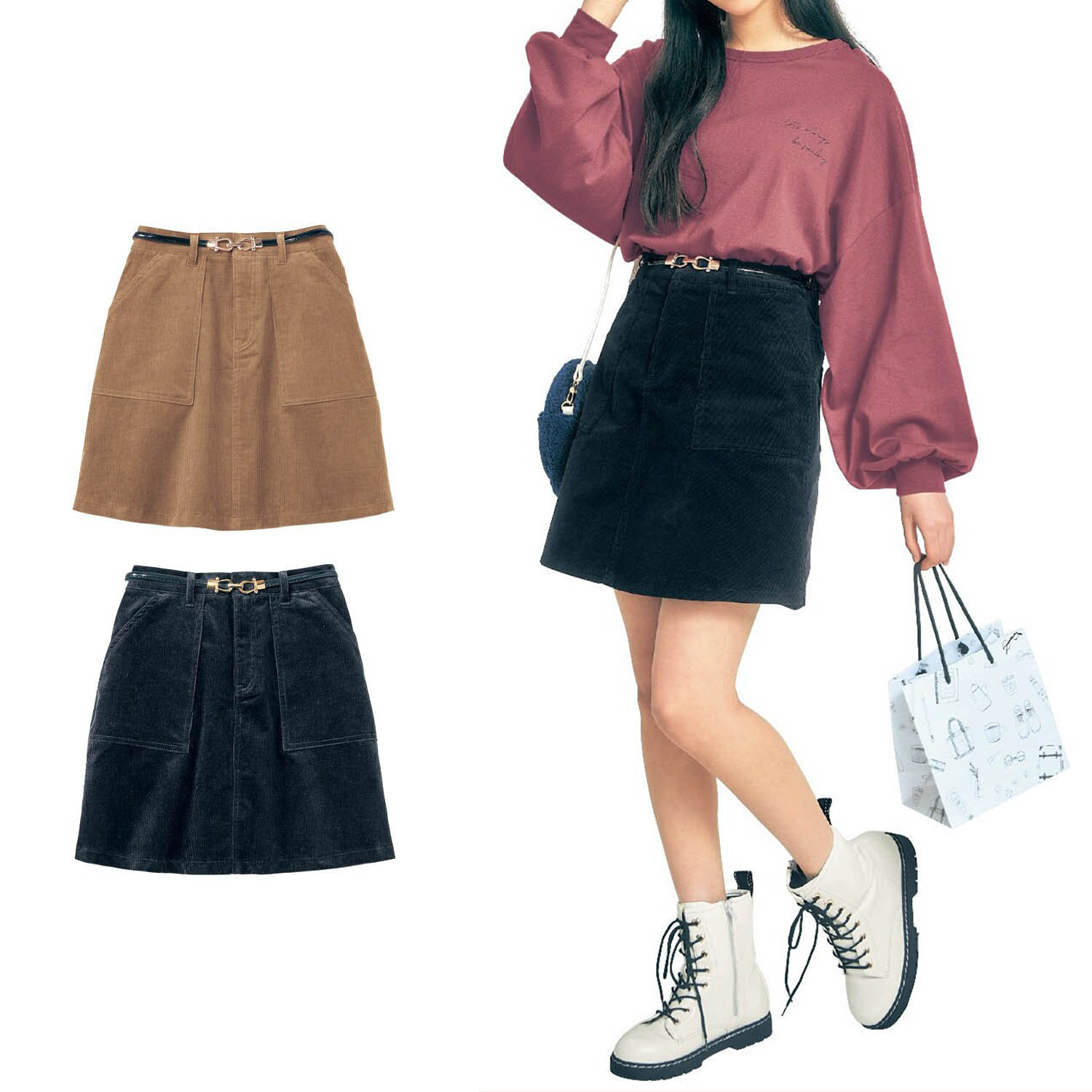 ―デザイン・スタイリング―・大人っぽく上品に決まる台形スカート・タイトすぎないシルエットで細見え効果も・シンプルなルックスで着回し力も◎・ゴーグルのバックル×合皮エナメルのベルト付き―素材―・伸縮性があり動きやすいストレッチ素材を採用・あたたかみのあるコーデュロイ生地で季節感もたっぷり―機能―・サイドポケット付きで便利・ベルトは長さ調節可能・ウエストはアジャスター付きの後ろゴムでサイズ調整も可能Papel lapiz(パペルラピス)ワタシの「好き」にフィットする、トレンドをおさえた好感度の高いおしゃれを提案するブランド。今のリアルなジュニア & ティーンの体形に合わせた独自のサイズを設定し、細部の着心地にもこだわりました。