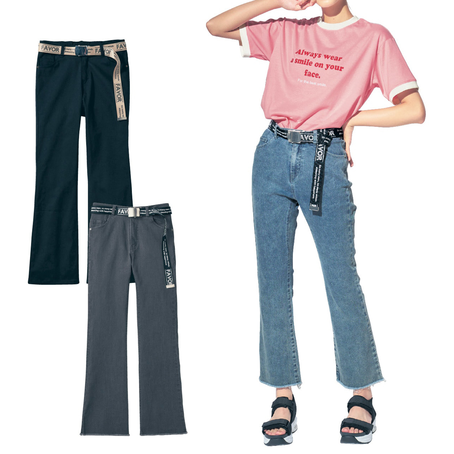 ―デザイン・スタイリング―・大人っぽさと美脚見えを両立できるフレアパンツ・膝から裾に向かって広がるフレアシルエットにロゴベルトがアクセント・初心者さんも挑戦しやすいひかえめなフレア感・フロントのボタンはパペルの刻印入り・デニムのみ裾フリンジ付きでこなれ感アップ―素材―・伸縮性のあるストレッチ素材で動きやすい―機能―・アジャスター付きの後ろゴムでサイズ調整が可能・取り外し可能なガチャベルト付きPapel lapiz(パペルラピス)ワタシの「好き」にフィットする、トレンドをおさえた好感度の高いおしゃれを提案するブランド。今のリアルなジュニア & ティーンの体形に合わせた独自のサイズを設定し、細部の着心地にもこだわりました。