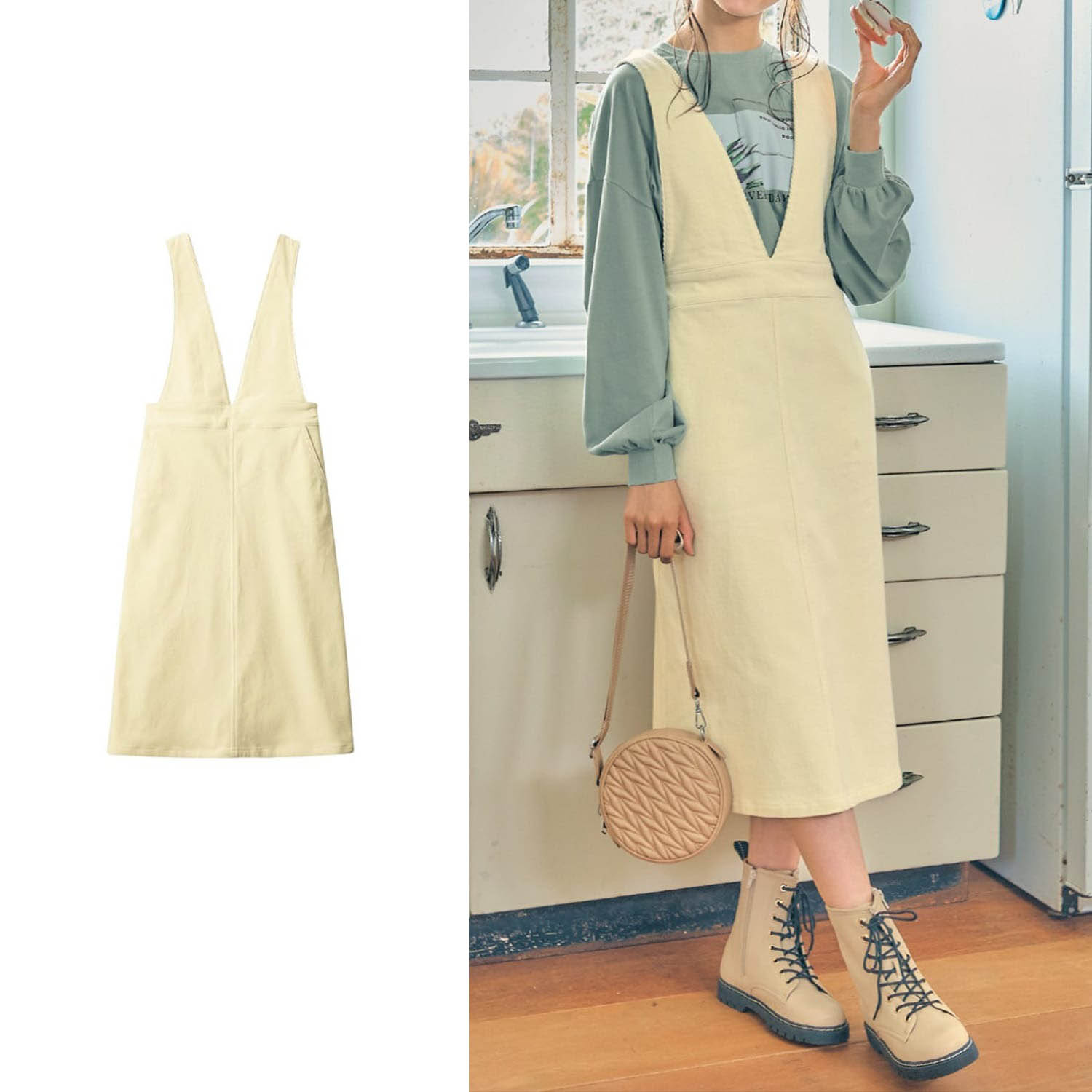 ―デザイン・スタイリング―・深めに開いたVネックですっきり見え・細めのコーデュロイが大人っぽい・お姉さんっぽく着こなせる長め丈・中に合わせるアイテムで印象チェンジも・落ち着いたカラー展開が魅力―素材―・伸縮性のあるストレッチコーデュロイ素材―機能―・肩ひもの長さは調節可能・後ろゴムではきやすさ抜群・ウエストはアジャスターゴム付きで調節可能・両脇ポケット付きPapel lapiz(パペルラピス)ワタシの「好き」にフィットする、トレンドをおさえた好感度の高いおしゃれを提案するブランド。今のリアルなジュニア & ティーンの体形に合わせた独自のサイズを設定し、細部の着心地にもこだわりました。