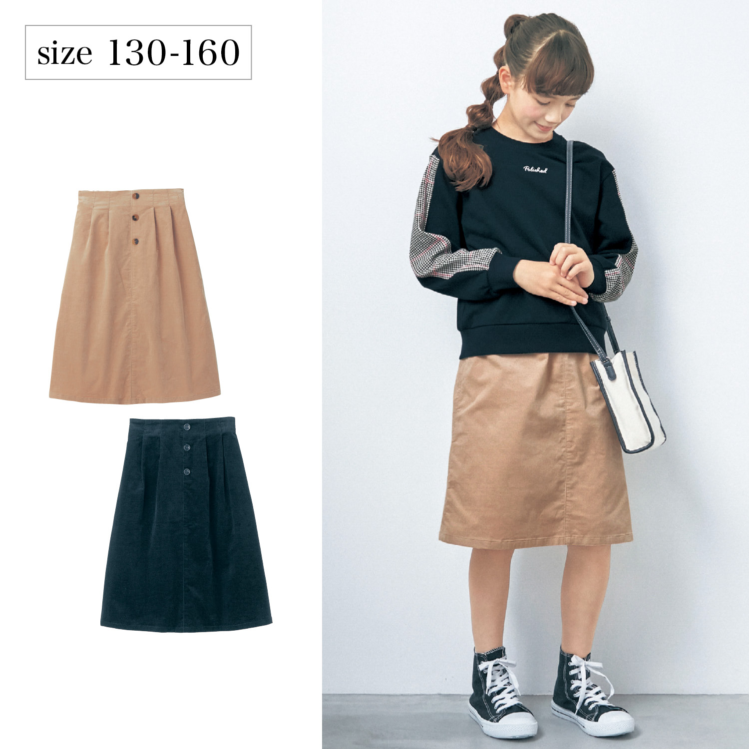 トップ >ベルメゾンネットの紹介 >ベビー、子供用品 >【ベルメゾン】コーデュロイタックスカート(ウエスト調節可)