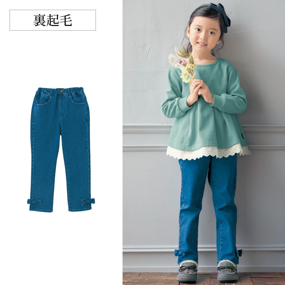 【ジータ/GITA】裾リボン裏起毛デニムパンツ 【子供ズボン】