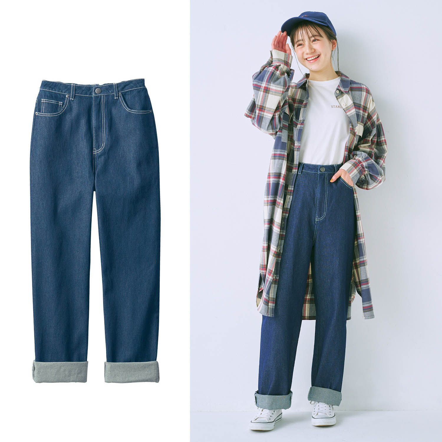 ―デザイン・スタイリング―・ロールアップしてフルレングスになる長めの丈感・身長に合わせてロールアップが楽しめる・裾の内側両脇がセルヴィッチ風で折り返すと可愛い・ゆったりワイドストレートなシルエット―素材―・身生地はしっかりとした綿100%のデニム素材―機能―・両脇ポケット付き・後ろ左右ポケット付き・後ろゴムではきやすさ抜群・ウエストはアジャスターゴム付きで調節可能STANDARD me 「自分らしいおしゃれを楽しみたい」「季節に合った着心地のいい服が好き」「流行もちょっぴり気になる」。そんな女の子が気兼ねなく着られるブランド STANDRD me 。365日どんなシーンでも着やすく、がんばらなくてもサマになるデザインやシルエット。シンプルなのにトレンド感も忘れない。そんな "ちょうどいい" お洋服がそろっています。