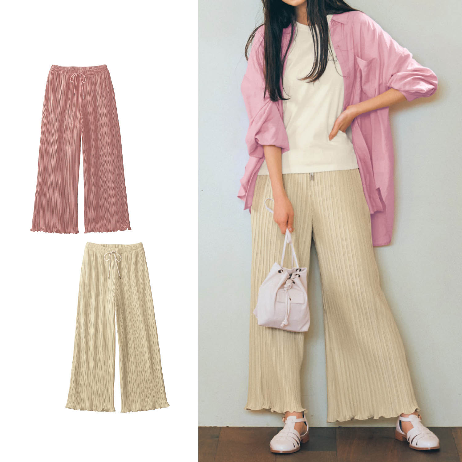 ―デザイン・スタイリング―・ゆったり楽ちんなワイドシルエット・細めのプリーツが大人っぽい・裾メロウデザインが女子ポイント・ウエストのコードひもがアクセント―素材―・さらっとしたはき心地のポリエステル素材―機能―・ウエストは総ゴムで取替え口あり・裏地付きで透けずに安心Papel lapiz(パペルラピス)ワタシの「好き」にフィットする、トレンドをおさえた好感度の高いおしゃれを提案するブランド。今のリアルなジュニア & ティーンの体形に合わせた独自のサイズを設定し、細部の着心地にもこだわりました。