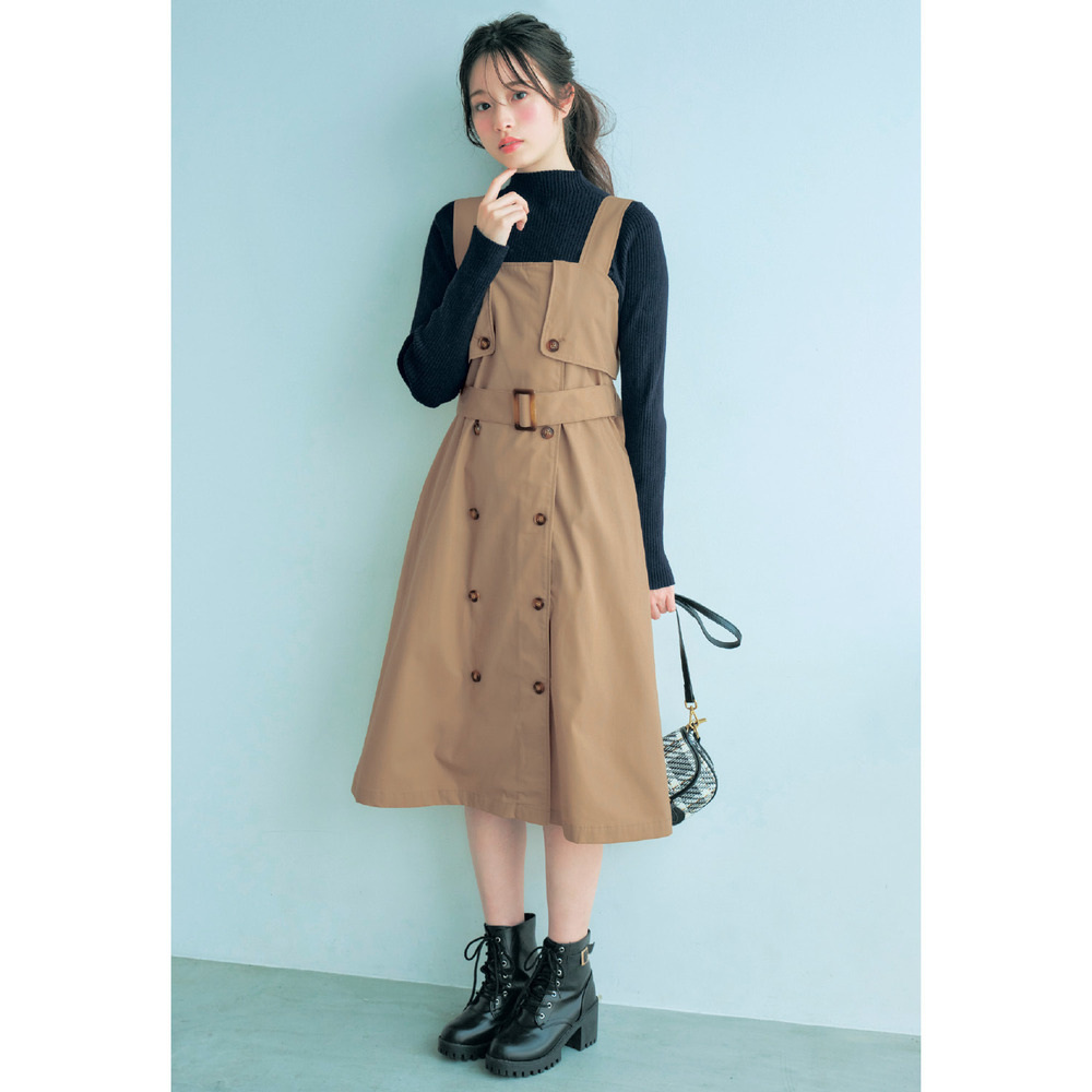 ―デザイン・スタイリング―・トレンチコート風のデザインが大人っぽい・ベルトでウエストマークするとすっきりシルエットに・フロントの飾りボタンがアクセント・一枚で着映えるからおでかけワンピに◎―素材―・張りのある平織素材―機能―・両脇ポケット付き・内側ファスナーで着脱しやすい・取り外し可能な共布ベルト付き・肩ひもはボタンで調節可能Papel lapiz(パペルラピス)ワタシの「好き」にフィットする、トレンドをおさえた好感度の高いおしゃれを提案するブランド。今のリアルなジュニア & ティーンの体形に合わせた独自のサイズを設定し、細部の着心地にもこだわりました。