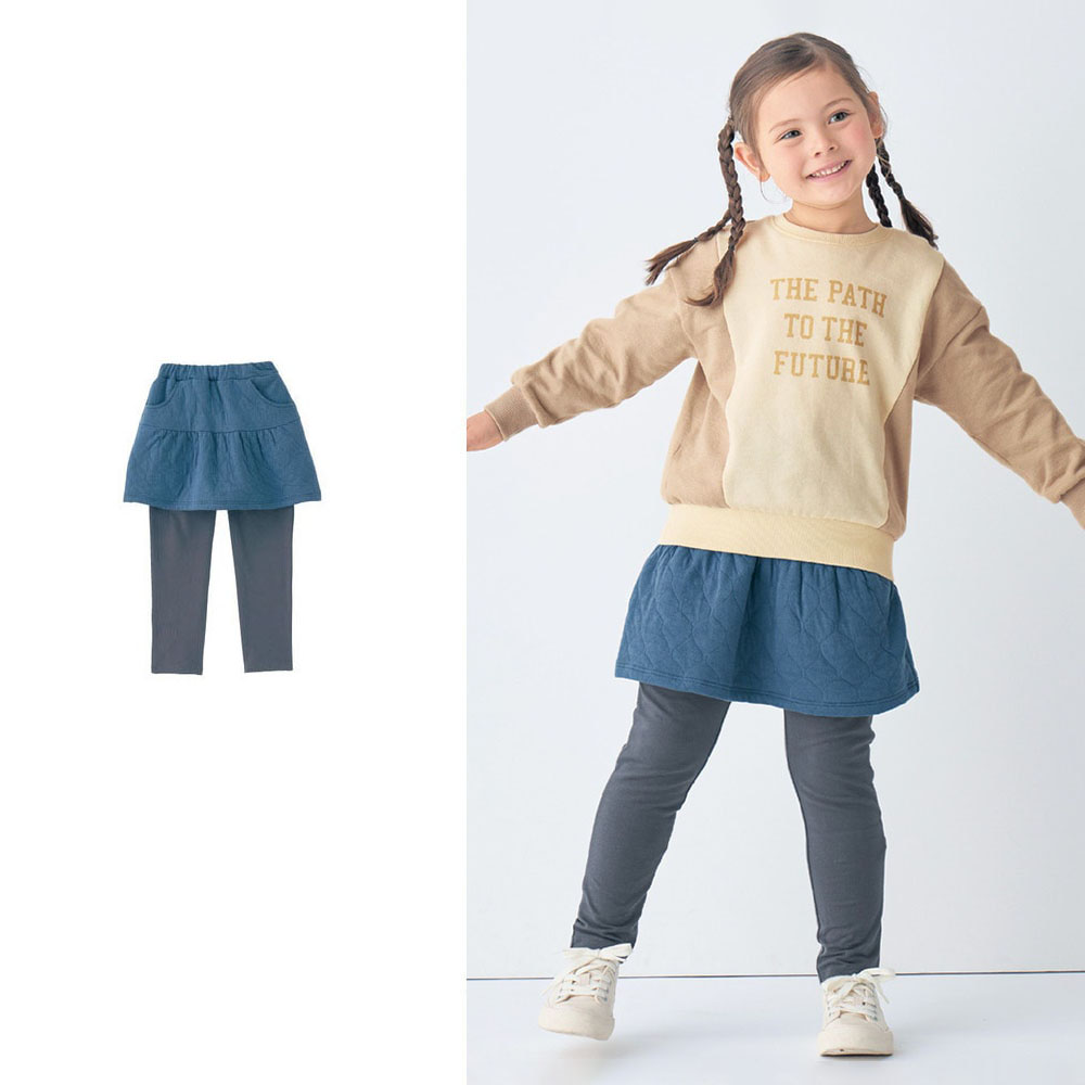 ―デザイン・スタイリング―・ニットキルトのスカートとレギンスを合わせた技ありボトムス・ギャザーを寄せたふんわりシルエットが愛らしい・ウエストは総ゴム仕様で脱ぎはきスムーズ・便利な左右ポケット付き―素材―・レギンス部分は伸びがよくなめらかなベア天竺素材・スカート部分は中わた入りのニットキルト素材であたたか―機能―・油性ペンで直接書ける、便利なお名前スペース2枚付きGITA(ジータ)安心して着せたいママと、毎日気持ちよく着たいコドモ。みんなの思いと一人ひとりの成長に寄り添って。こだわりの機能と豊富なサイズ、デザインバリエーションが魅力のオリジナルブランド