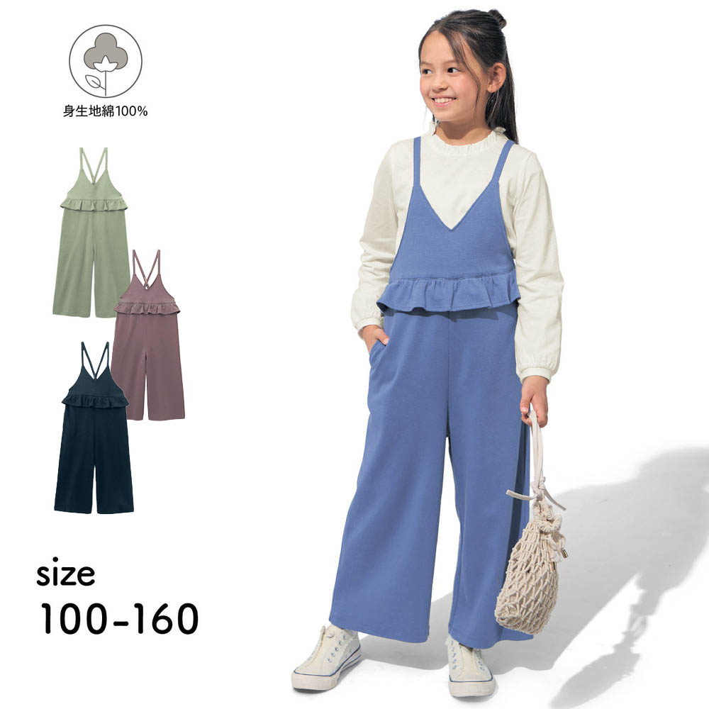 ―デザイン・スタイリング―・ニュアンスカラーで仕上げた、大人っぽい印象のオールインワン・ウエストをぐるりと囲んだフリルが愛らしいアクセントに・デイリーからおでかけまで、幅広いシーンで活躍・便利な右脇ポケット付き・ウエストは後ろゴム仕様で程よくフィット―素材―・動きやすくてやわらかな素材でラクな着心地ー機能ー・肩ひもの長さは3段階で調節可能・油性ペンで直接書けてにじみにくいお名前スペース付きGITA(ジータ)安心して着せたいママと、毎日気持ちよく着たいコドモ。みんなの思いと一人ひとりの成長に寄り添って。こだわりの機能と豊富なサイズ、デザインバリエーションが魅力のオリジナルブランド