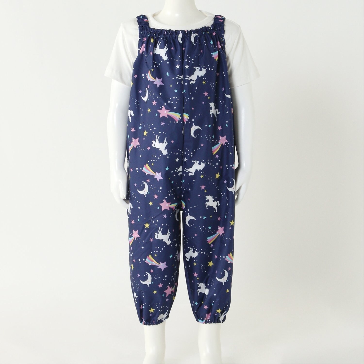 ―デザイン・スタイリング―・お洋服の上から着られるプレイウエア・子供らしく、愛らしい総柄プリント・お好みで選べる豊富なデザインバリエーション―機能―・肩ひもはゴム仕様で着脱がラクチン・収納に便利な巾着バッグ付き