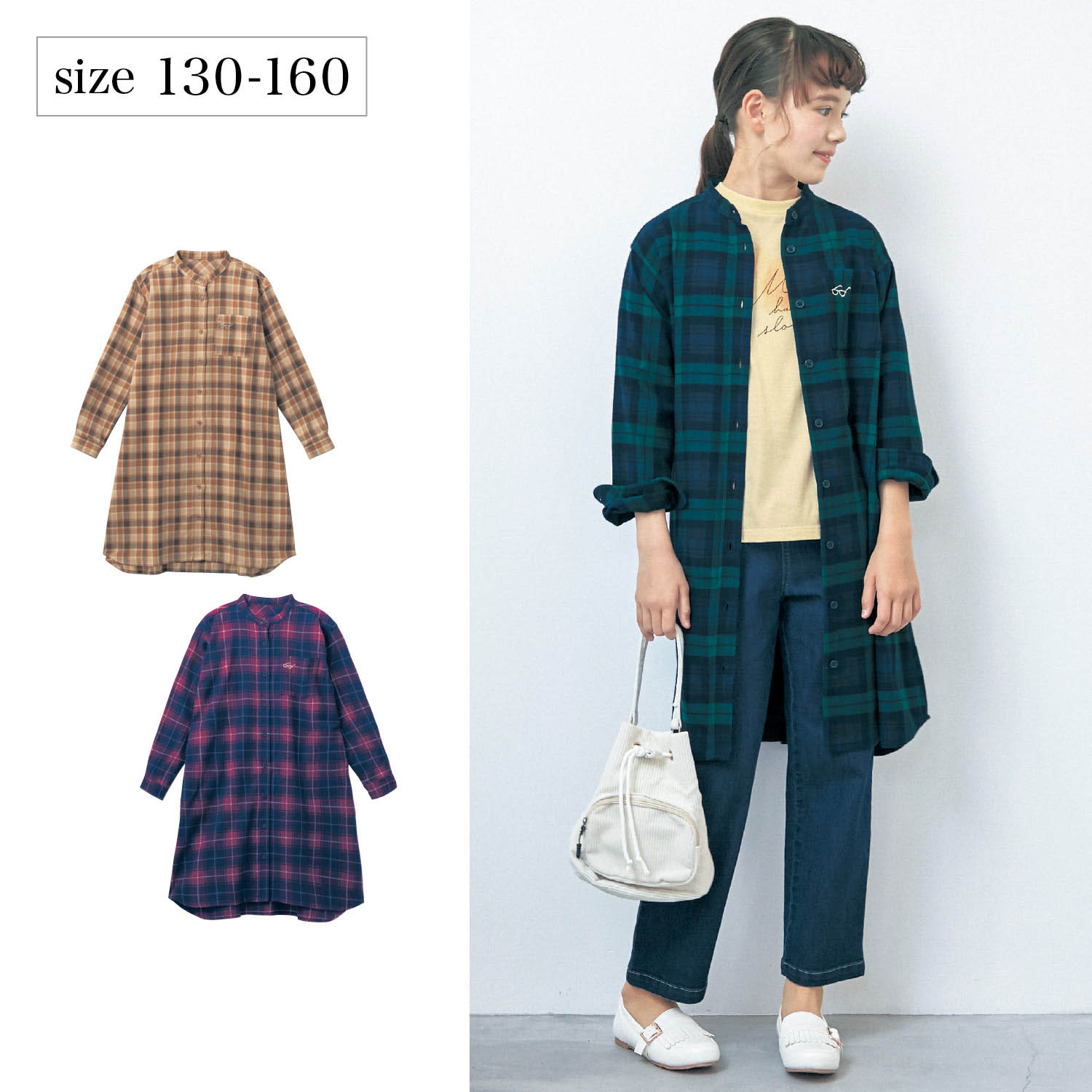【ベルメゾン】スタンドカラーチェックシャツワンピース 【子供服】