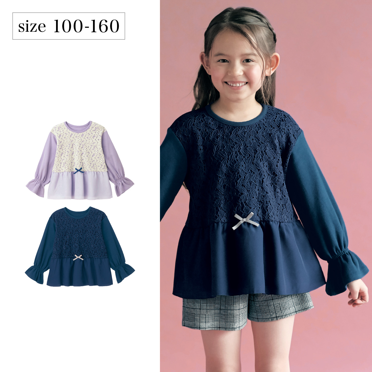 トップ >ベルメゾンネットの紹介 >ベビー、子供用品 >【ベルメゾン】花レース裾シフォン切替えチュニック 【子供服 長袖】
