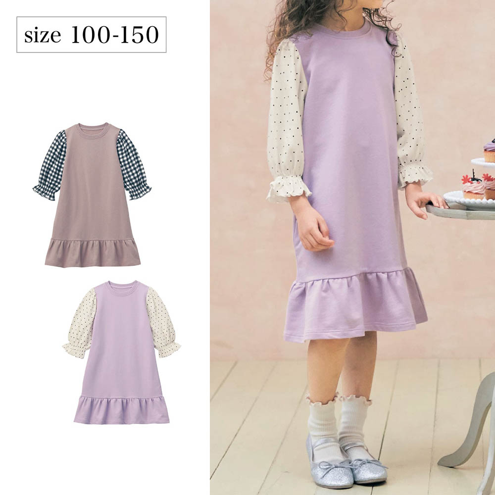 【ジータ/GITA】袖フリル八分袖切替ワンピース 【子供服 長袖】