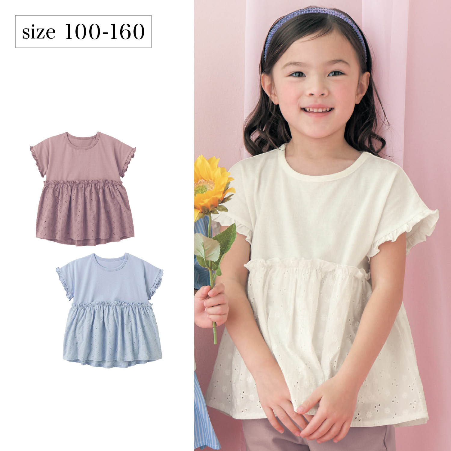 【ベルメゾン】花カットレース切替えチュニック 【子供服 半袖】