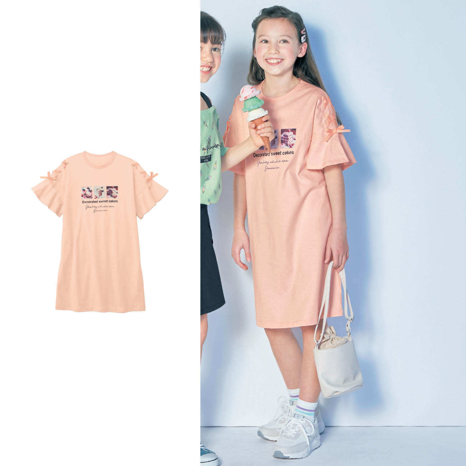 【ベルメゾン】肩レースアップフレアスリーブワンピース 【子供服 半袖】