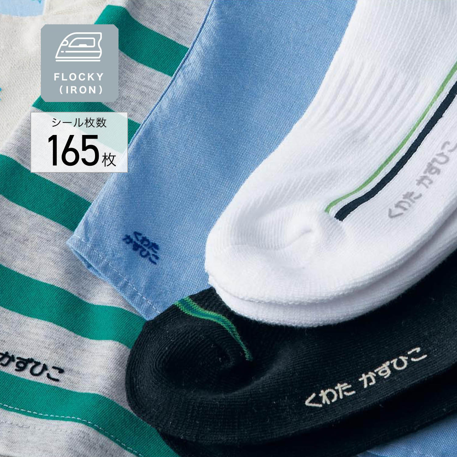 入園・入学準備に必須!お名前付けグッズアイロンで上から押さえるだけで、お名前がぷっくり浮き立つフロッキーシール伸縮性があるので、靴下や下着などにもきれいに貼れますカット済みだから切る手間も省けて便利ですタテ型も付いていますひらがな、カタカナ、漢字で10文字まで可能お名前165個入り