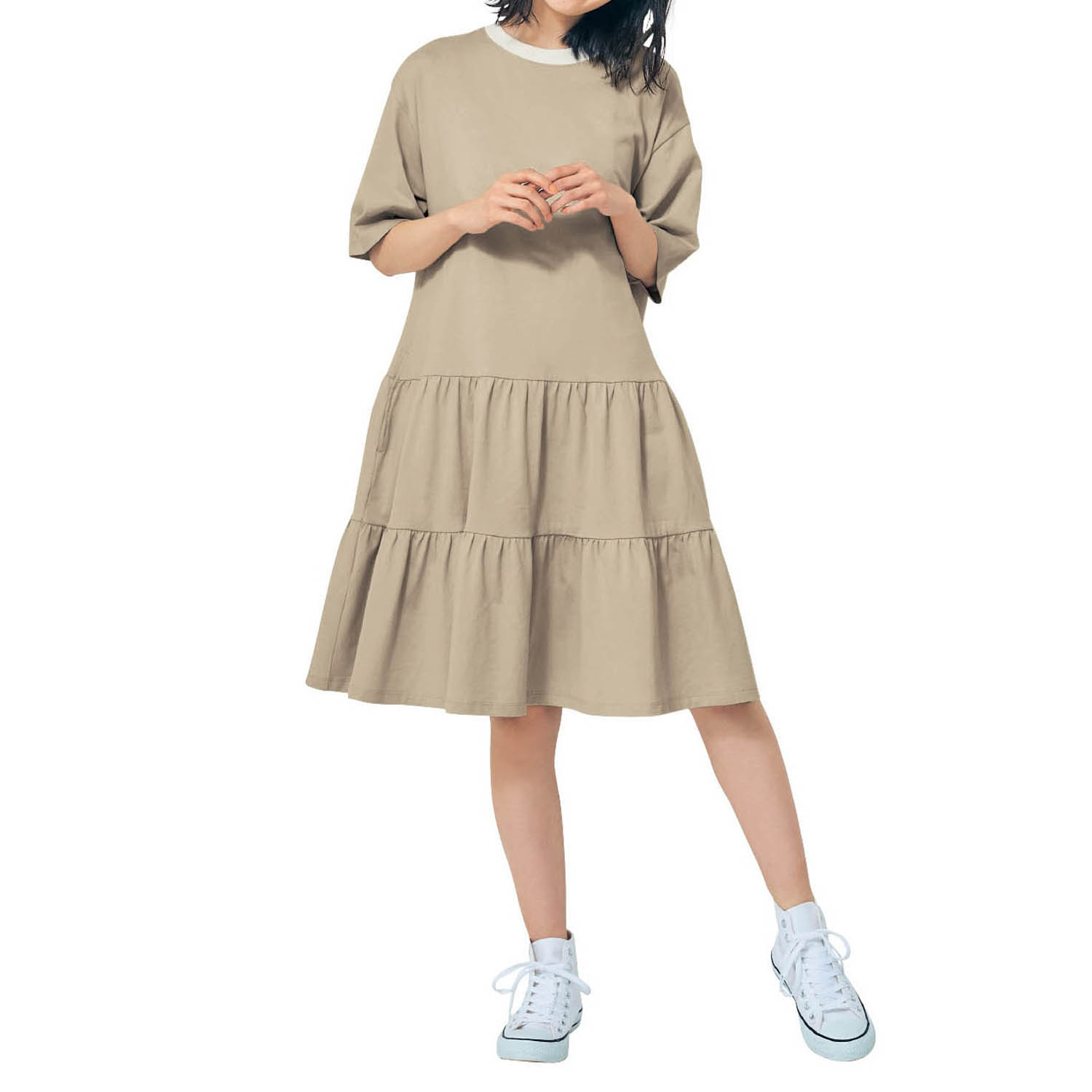 ―デザイン・スタイリング―・裾にボリュームのあるティアードデザイン・襟ぐりの配色デザインがアクセント・ハーフスリーブでこなれた印象に・一枚で着られる絶妙な丈感―素材―・落ち感のある柔らかなカットソー素材―機能―・両脇ポケット付きPapel lapiz(パペルラピス)ワタシの「好き」にフィットする、トレンドをおさえた好感度の高いおしゃれを提案するブランド。今のリアルなジュニア & ティーンの体形に合わせた独自のサイズを設定し、細部の着心地にもこだわりました。