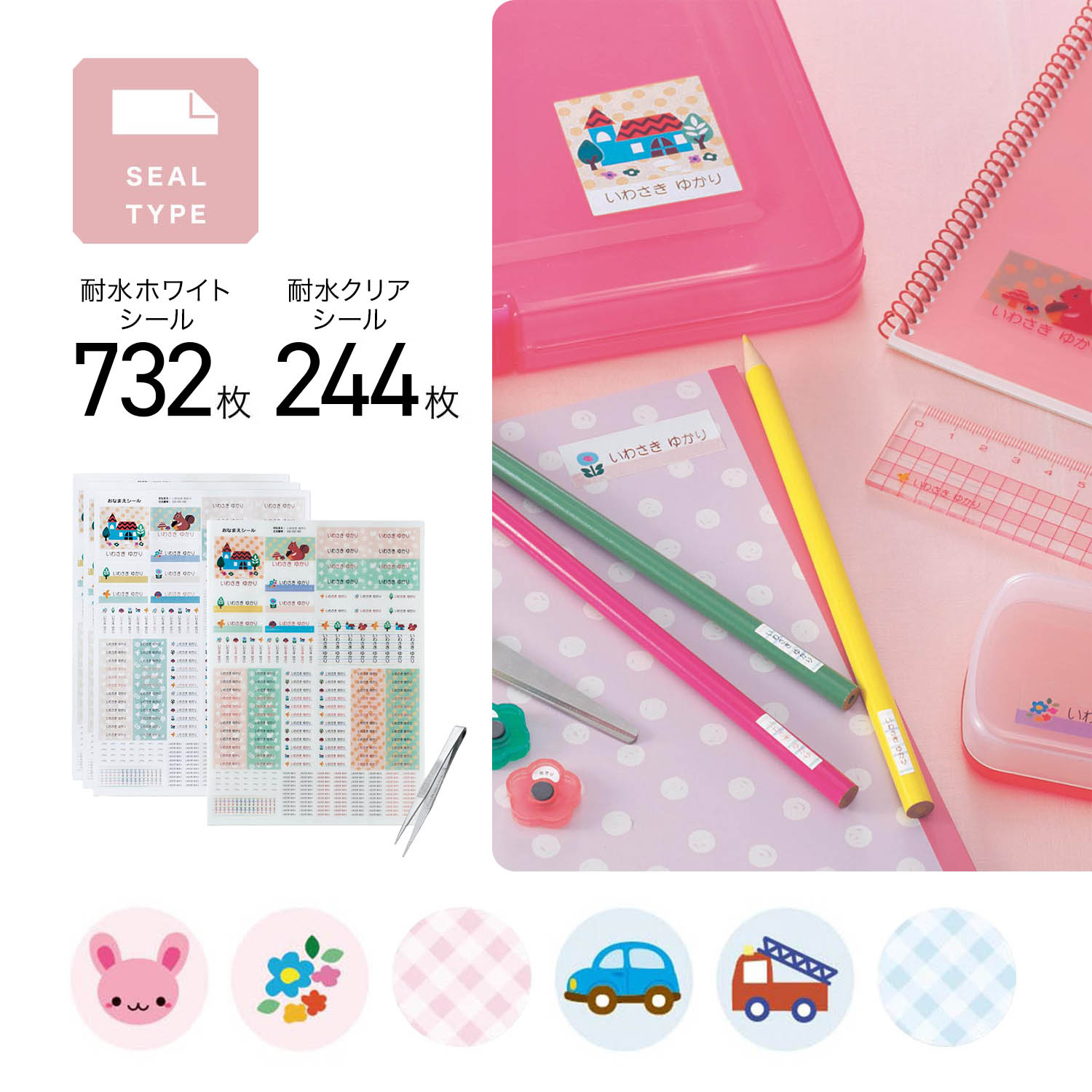 【ベルメゾン】いろんな柄が楽しめるラミネートお名前シール 文具・ランチグッズ・雨具に