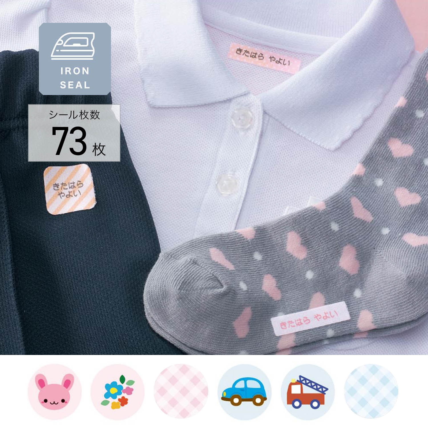 入園・入学準備に必須!お名前付けグッズ。シール自体が伸縮性のある素材でできているので、体操服やジャージ、ソックス、上靴の甲ゴム部分など、伸び縮みするアイテムにぴったりフィット。アイロンで簡単に接着できるので、アイテムに直接名前を書いたり縫い付けたり、といった手間も省けて便利です。計73個のアイロンシールは、形・サイズのバリエーションも豊富。貼るアイテムに合わせて形やサイズが選べます。
