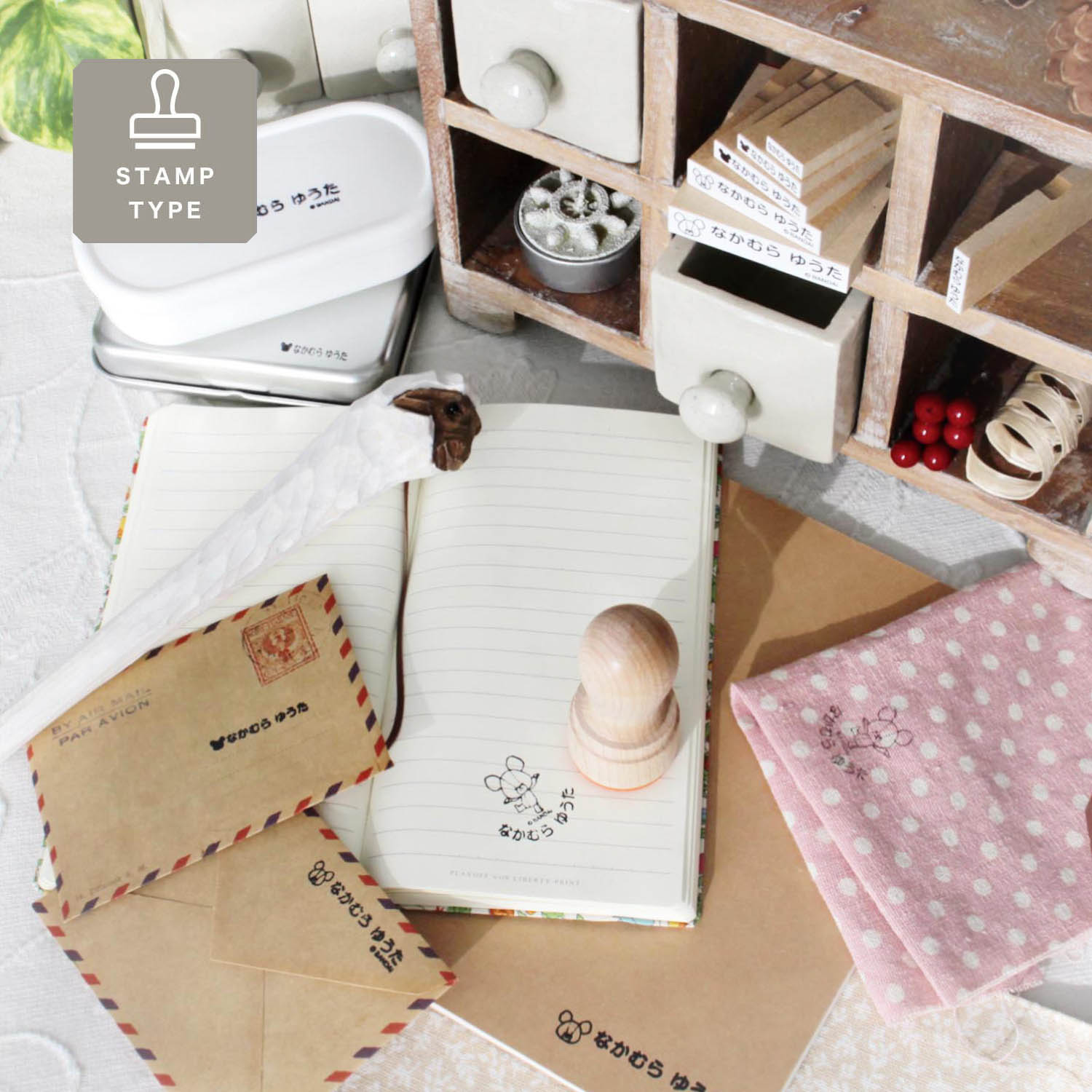 名前スタンプのほか、クリーナー、ガイド定規、スタンプパッドが、収納ケースにひとまとめになった名入れスタンプセットです。ポンッと押すだけで名入れが完了するから、入園・入学準備に活躍すること間違いなし。紙、布、プラスチック、陶器など様々な材質に使えるのもポイントです。かわいい「くまのがっこう」のデザインで、お子様のテンションもあがりそう。