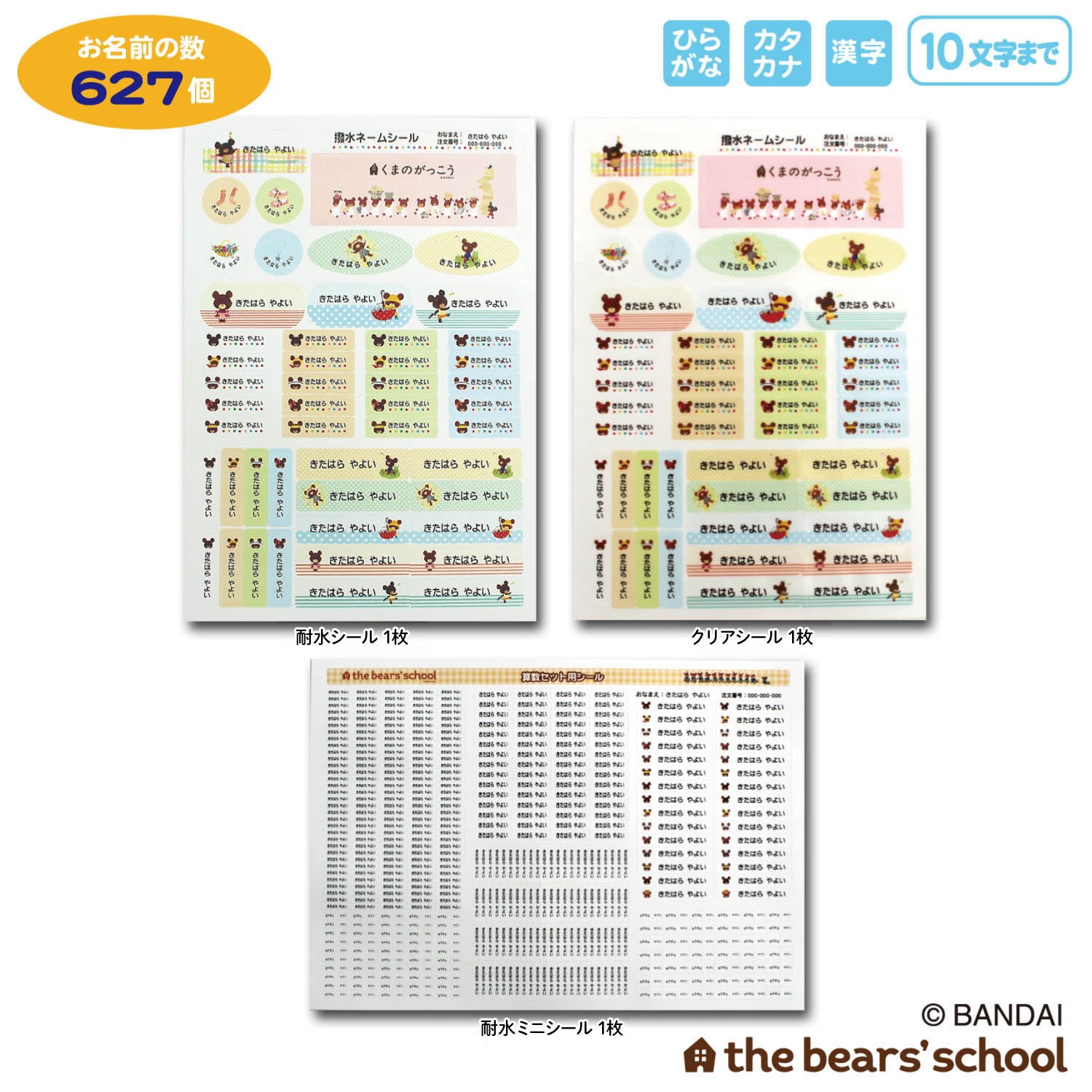 【ベルメゾン】【名前シール】名入れ撥水ネームシール3種セット(くまのがっこう)