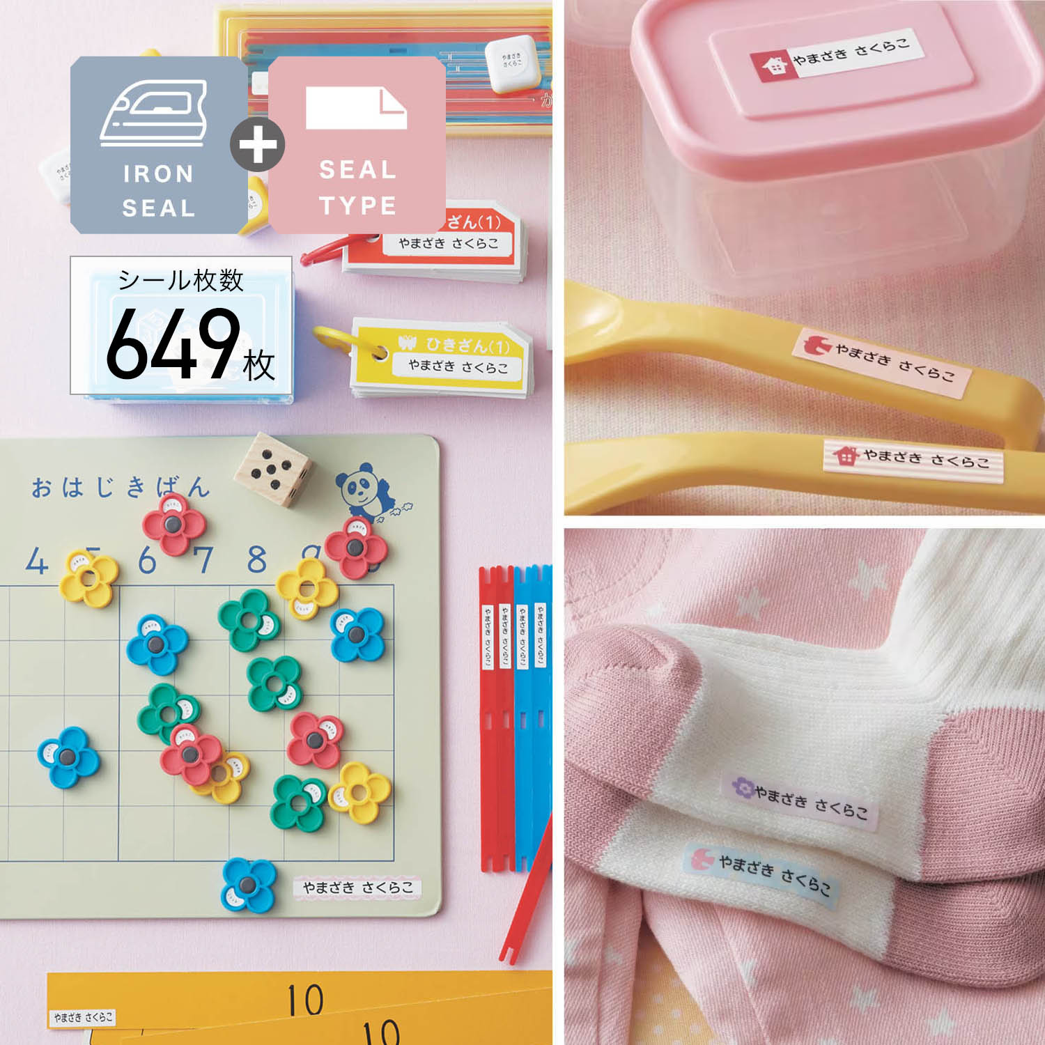入学準備に必要な撥水シール、算数セット用、布アイロンシールのお得な3点セット。撥水シールは撥水加工を施しているので、お弁当箱や歯ブラシ、絵の具などにも使えます。布アイロンシールはアイロン無しでも貼り付けができて急な準備にもOK。アイロンを使えば、お洗濯をしてもはがれにくくなります。あれこれ名入れが必要な時、迷ったらこのセットがおすすめです。