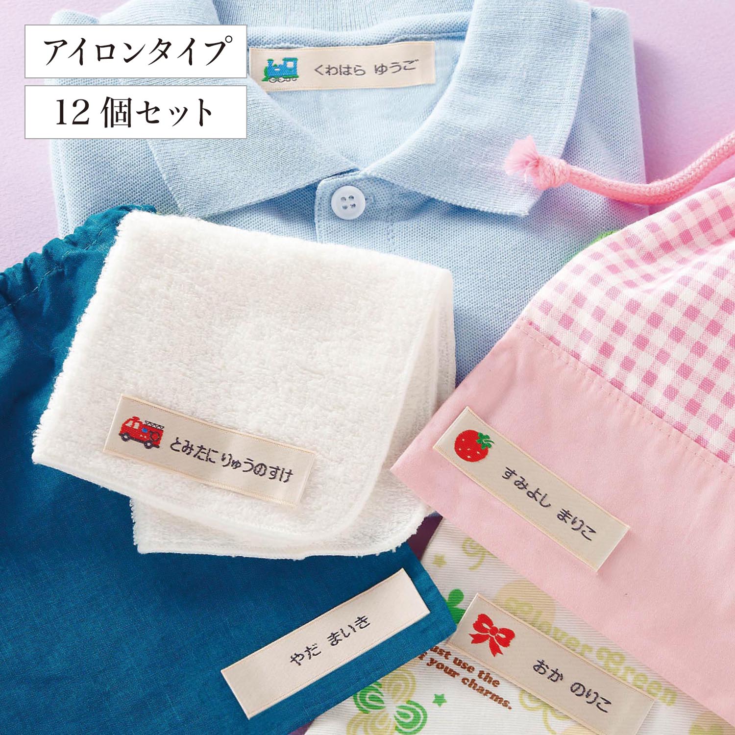上段の空欄には学年やクラス、住所などを書き込んで幼稚園や学校はもちろん、習いごとなどにも使えます名前は大きめの文字でわかりやすく、伸縮する布地にもしっかりくっきり名前のみのタイプとのセットなので、用途に合わせて使い分けできます