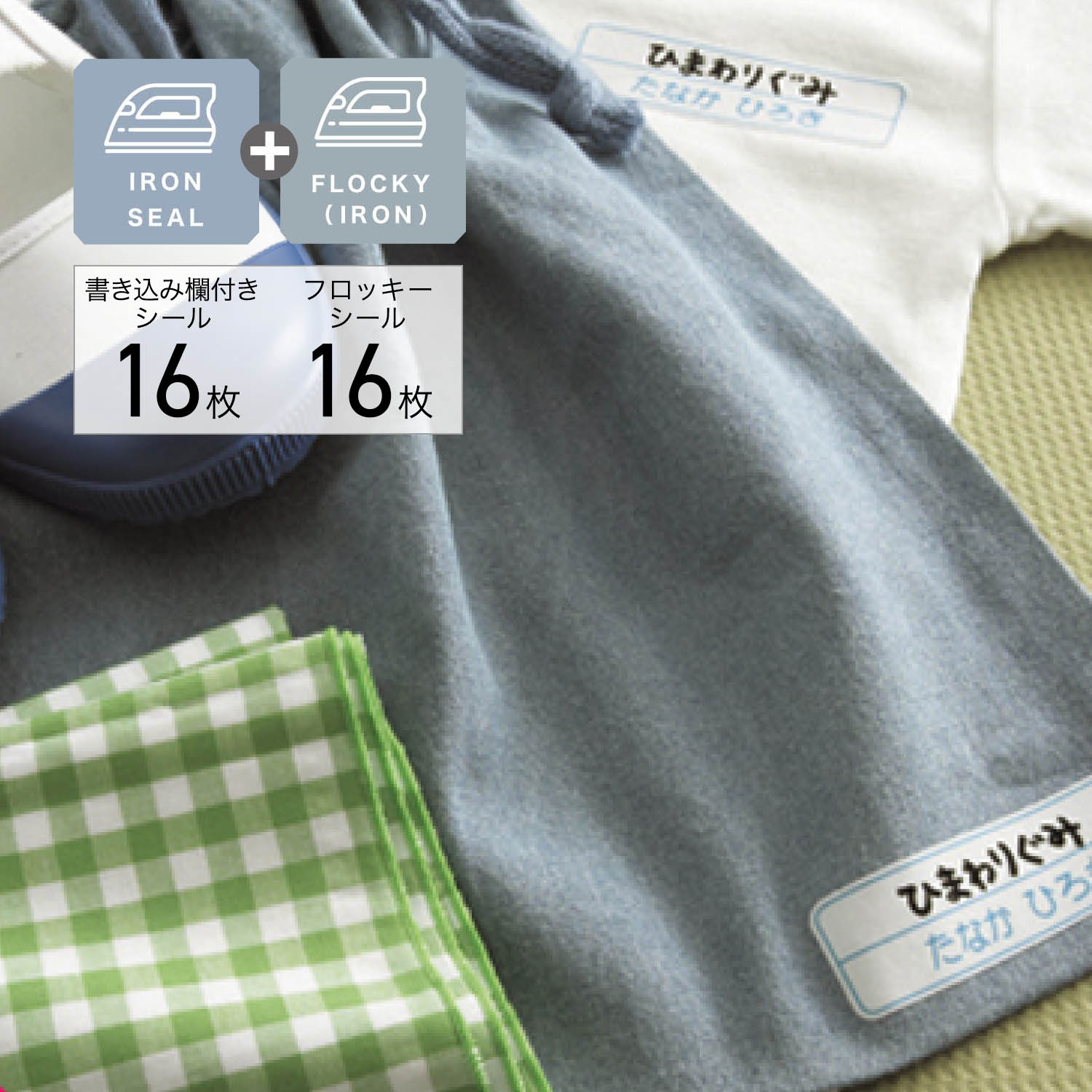 上段の空欄には学年やクラス、住所などを書き込んで幼稚園や学校はもちろん、習いごとなどにも使えます名前は大きめの文字でわかりやすく、伸縮する布地にもしっかりくっきり名前のみのタイプとのセットなので、用途に合わせて使い分けできます