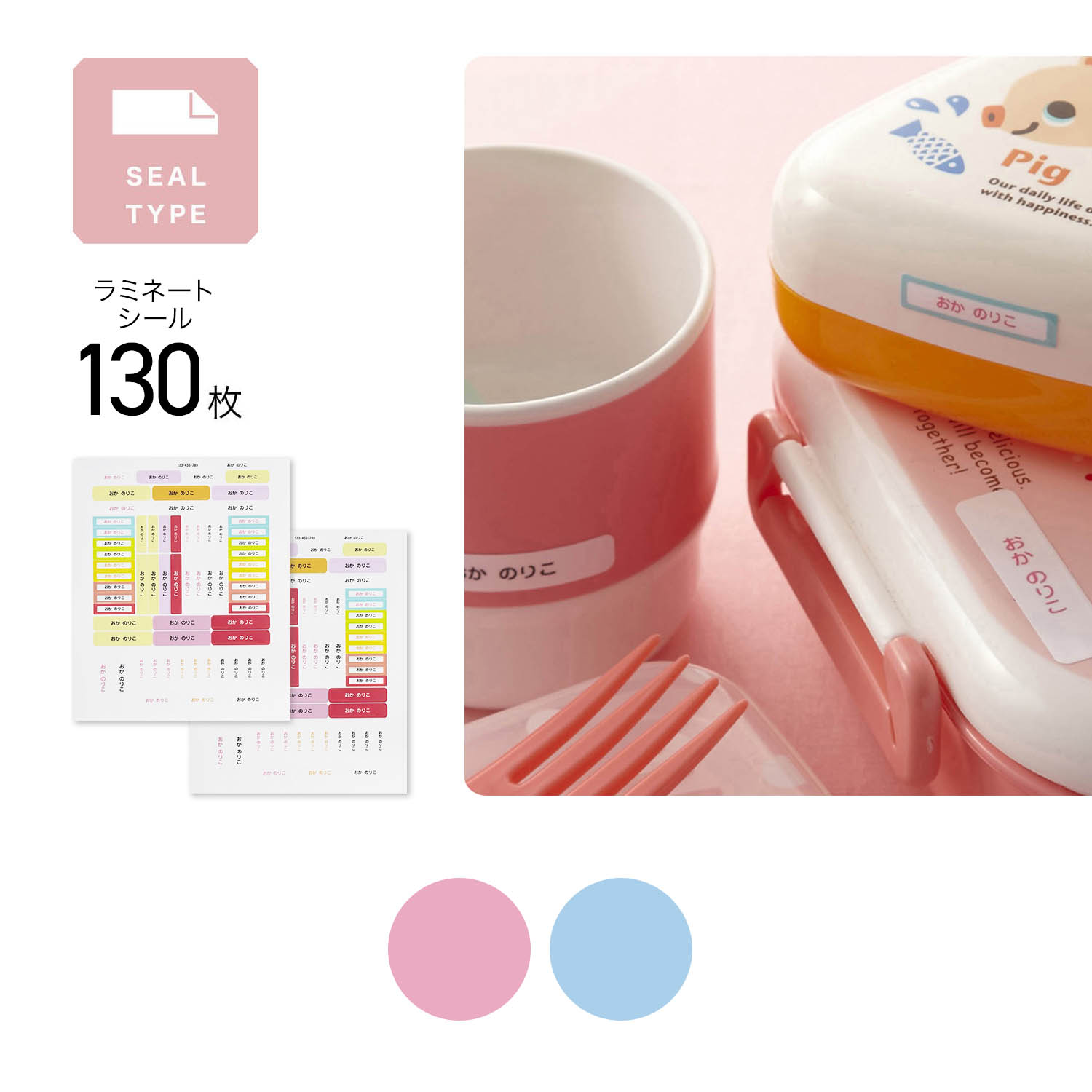 カラフルな色使いが楽しいシンプルなネームシール。いろんなサイズの縦書き、横書きが揃った2枚セットです。ラミネート加工で水や汚れに強く、お弁当から文房具まで大活躍。
