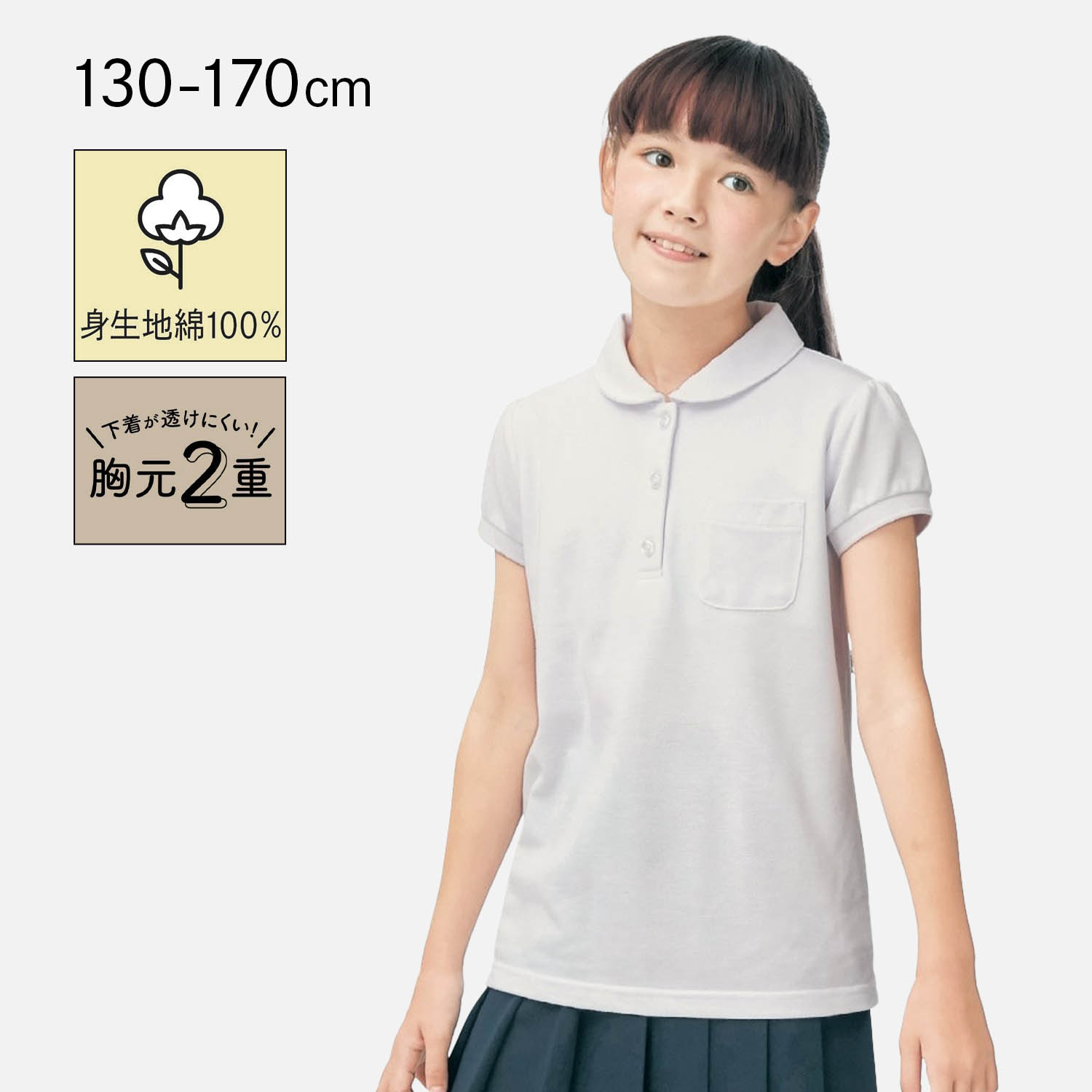 【ジータ/GITA】胸元二重ガールズ半袖ポロシャツ 【制服 白】