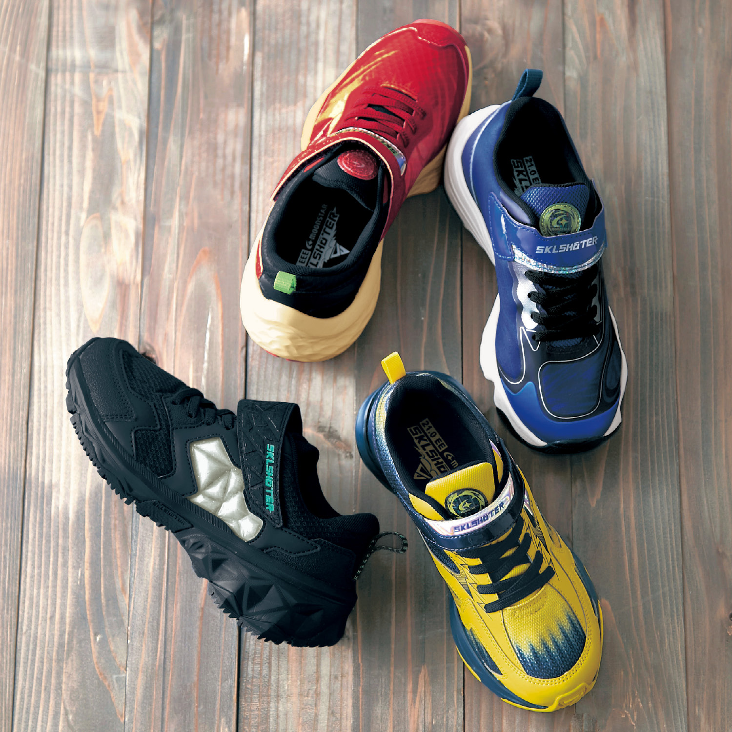 ー機能ー・ムーンスター独自のスキルシューターを靴底に搭載・地面を踏み込む時にパワーを蓄積・蹴り出す力で発動して俊敏な動きをサポート・伸びるゴムひもで脱ぎ履きしやすい・ワンタッチテープでフィット感の調節もスムーズーデザイン・スタイリングー・運動会など走るシーンにおすすめの本格派モデル・カッコいいカラーリングに足元からテンション上がる