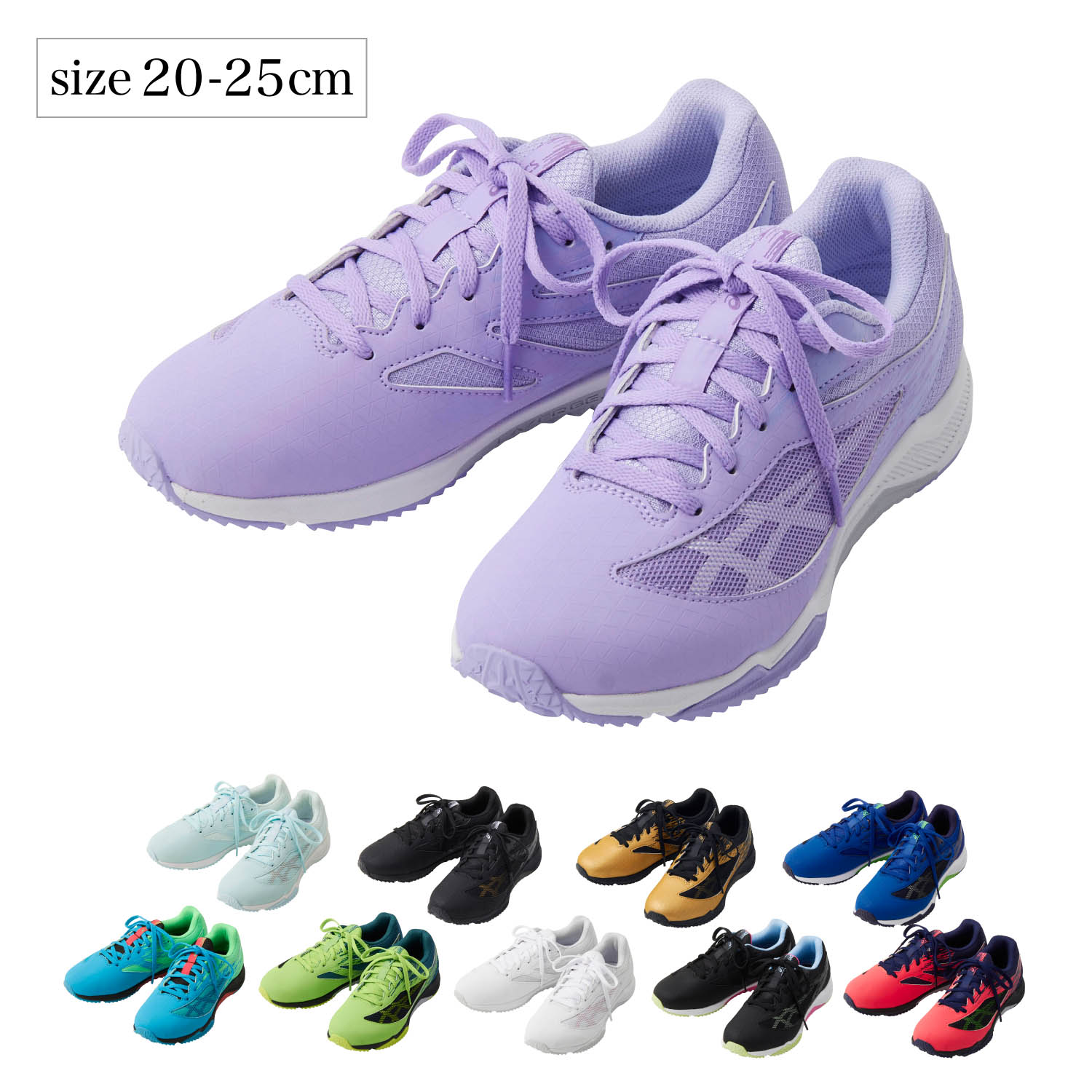 ―機能―・キッズ専用ラスト(※)を採用し、現代の子供の足に合わせて設計・幅広ゆったりワイドラスト設計(3E相当)・シャベル状のスパイクが路面をグリップ、ダッシュ時のロスを低減・つま先部の屈曲溝がキック時のパワーを高め、ダイナミックな走りをサポート・安定した走りをサポートするためのトラスティック・樹脂製ヒールカウンターが走行時のかかとのブレを軽減―仕様―・しっかりフィット感を調節できるくつひもタイプ―素材―・消臭機能素材「MOFF」を中敷つま先部分の裏側に使用※アシックススポーツ工学研究所の研究データをもとに設計したオリジナルラスト