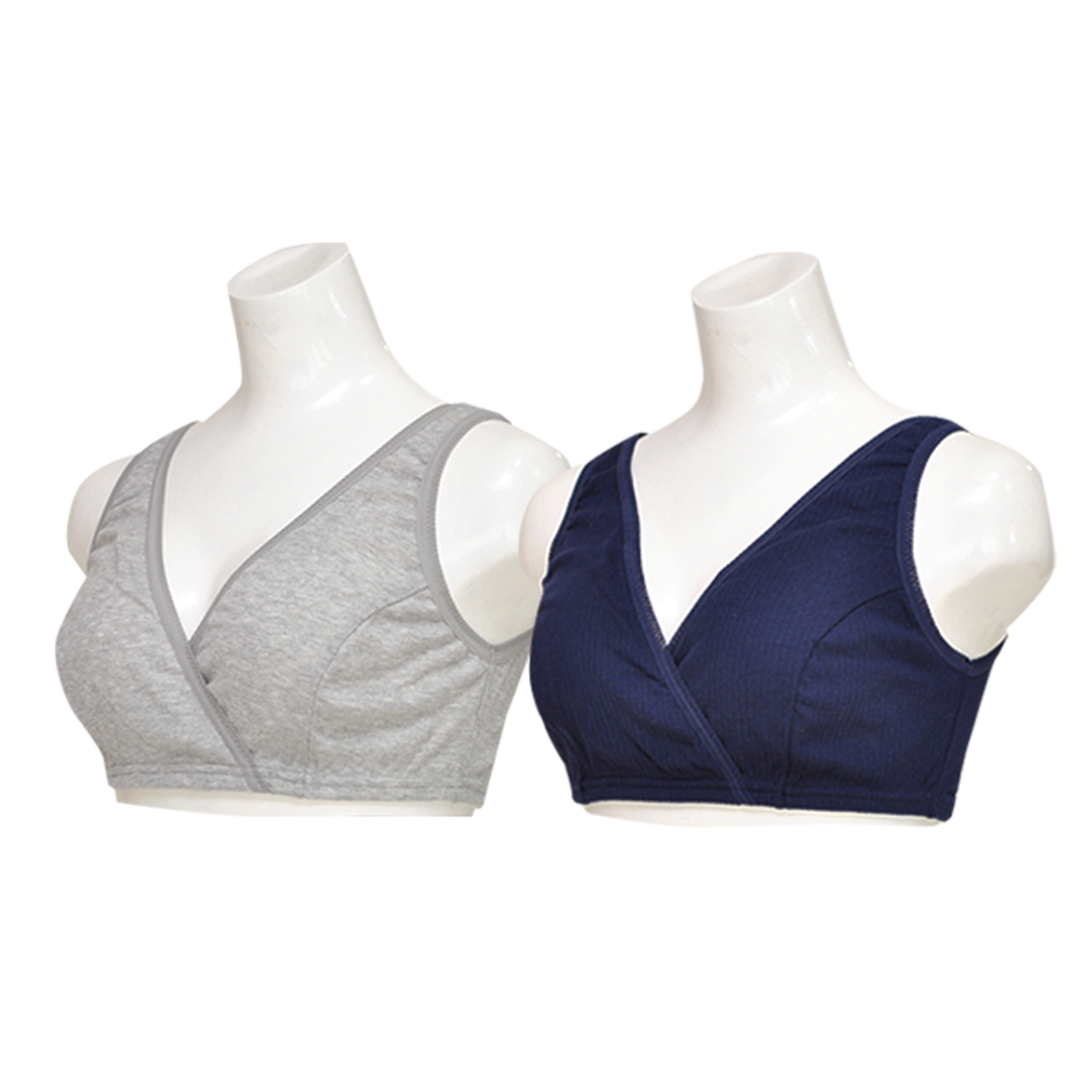 【マミー ルナ/Mammy Luna】2枚組ハーフトップ(無地×リブ)【妊娠初期から産後の授乳期まで カップなし】