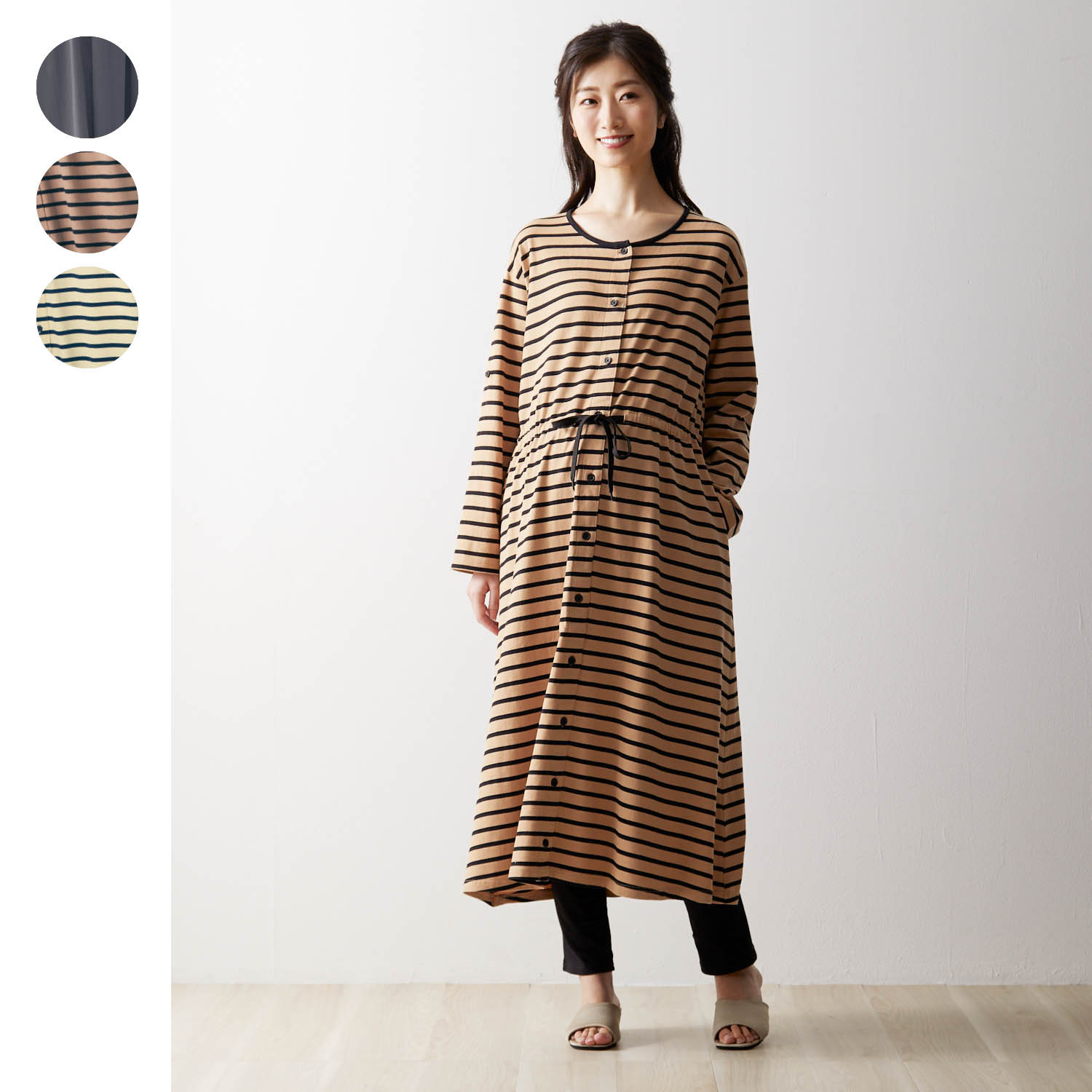 【ベルメゾン】入院準備に!マタニティサイズウエストドロストワンピース & リブレギンスパジャマ 【長袖 産前・産後】